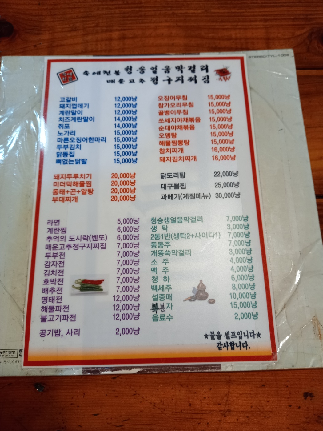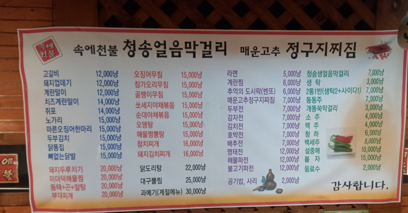 영도 청송얼음막걸리 메뉴판입니다.