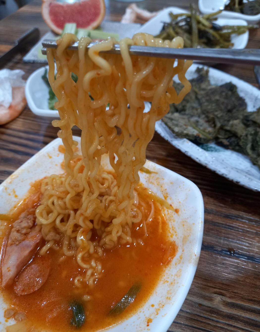 다못먹을거 같아서 라면사리까지 먹으려고 넣은겁니다.