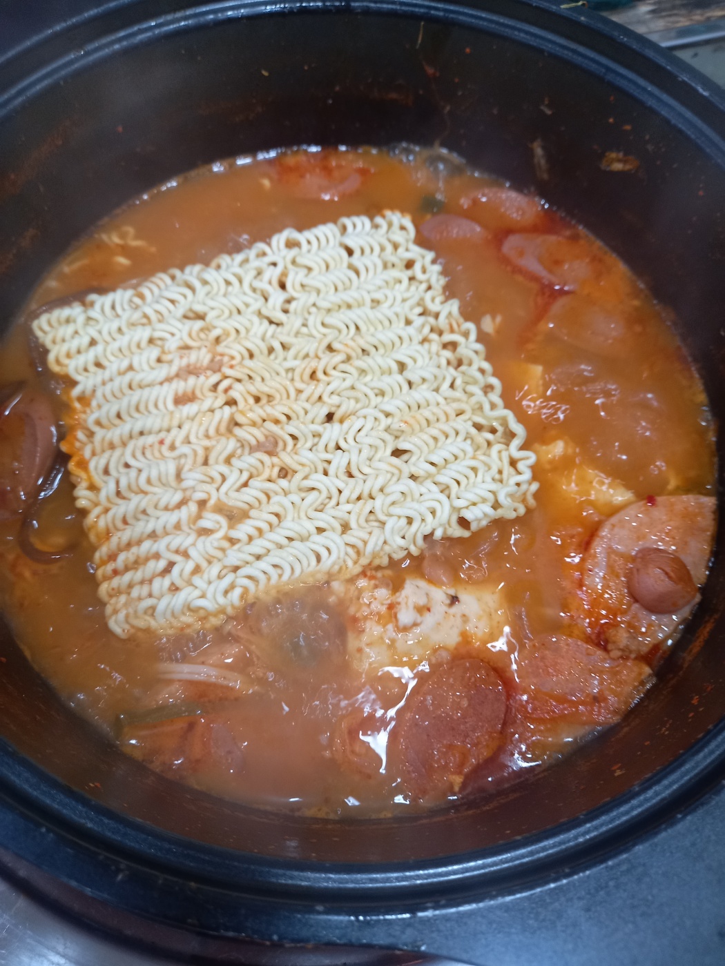 부대찌개를 맛있게먹으면서 어느정도 먹고 라면사리까지 넣었습니다.