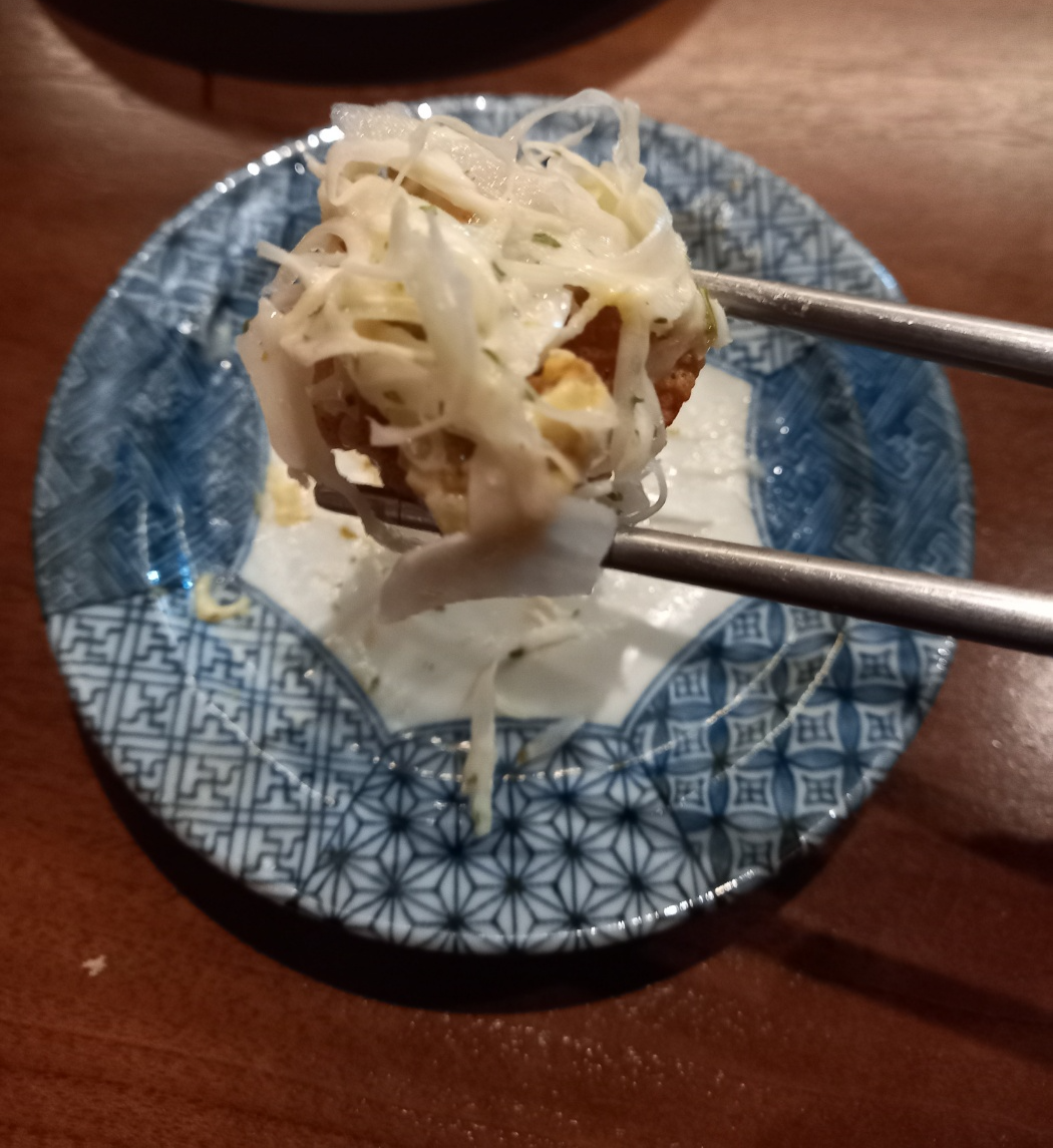 바삭하게 잘 구워진 치킨가라아게에 치킨난반의 소스가 듬뿍 뿌려져서 나오는데