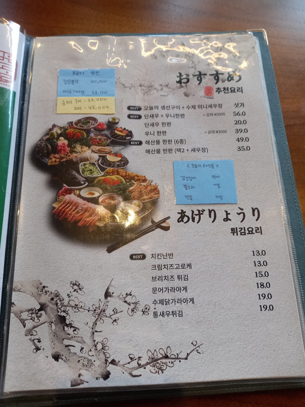 남포동 일월육일 메뉴판입니다.