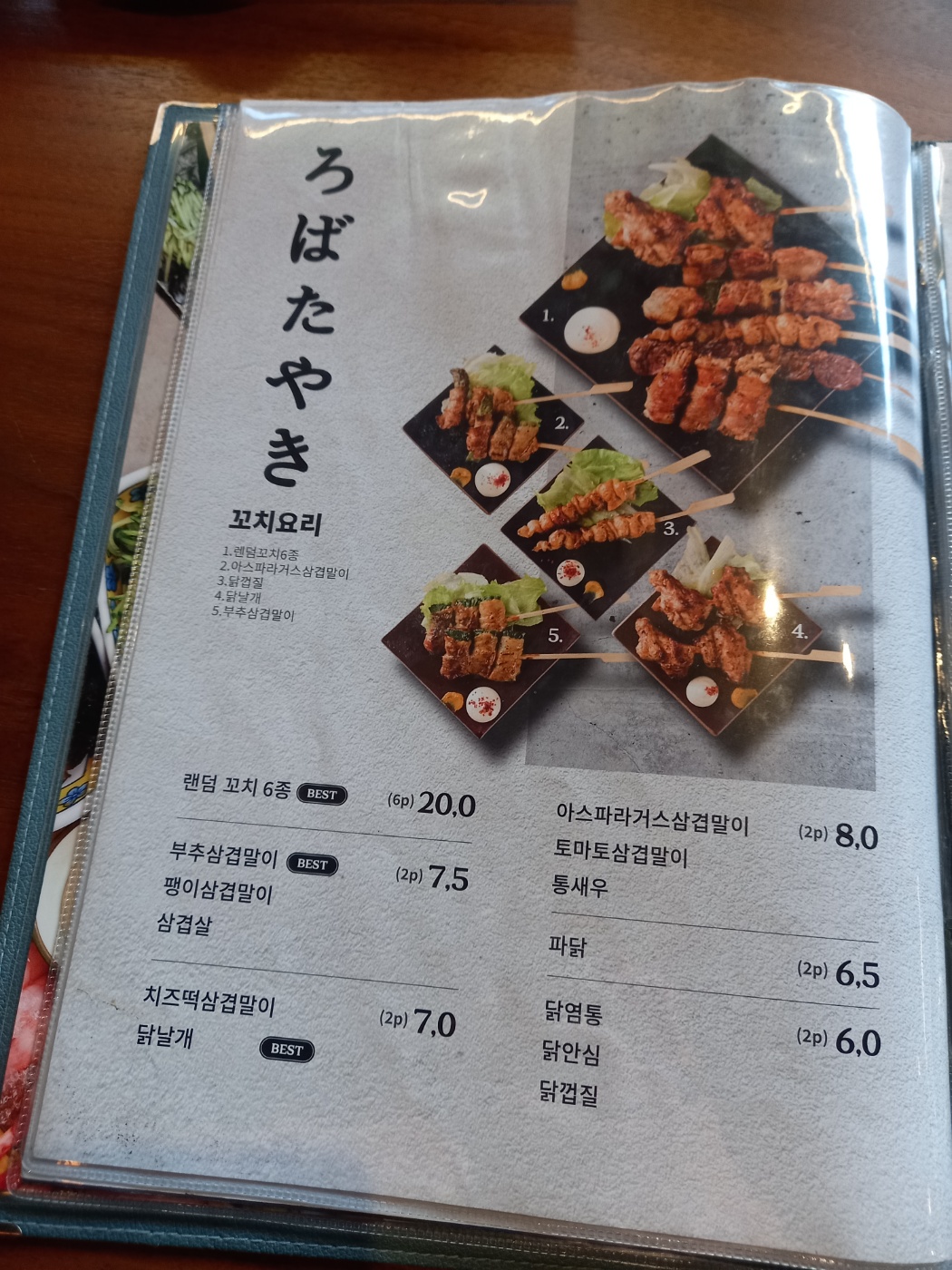 일단 저는 꼬지를 먹으려고 방문한거라 랜덤 꼬지 6종을 주문하였습니다.