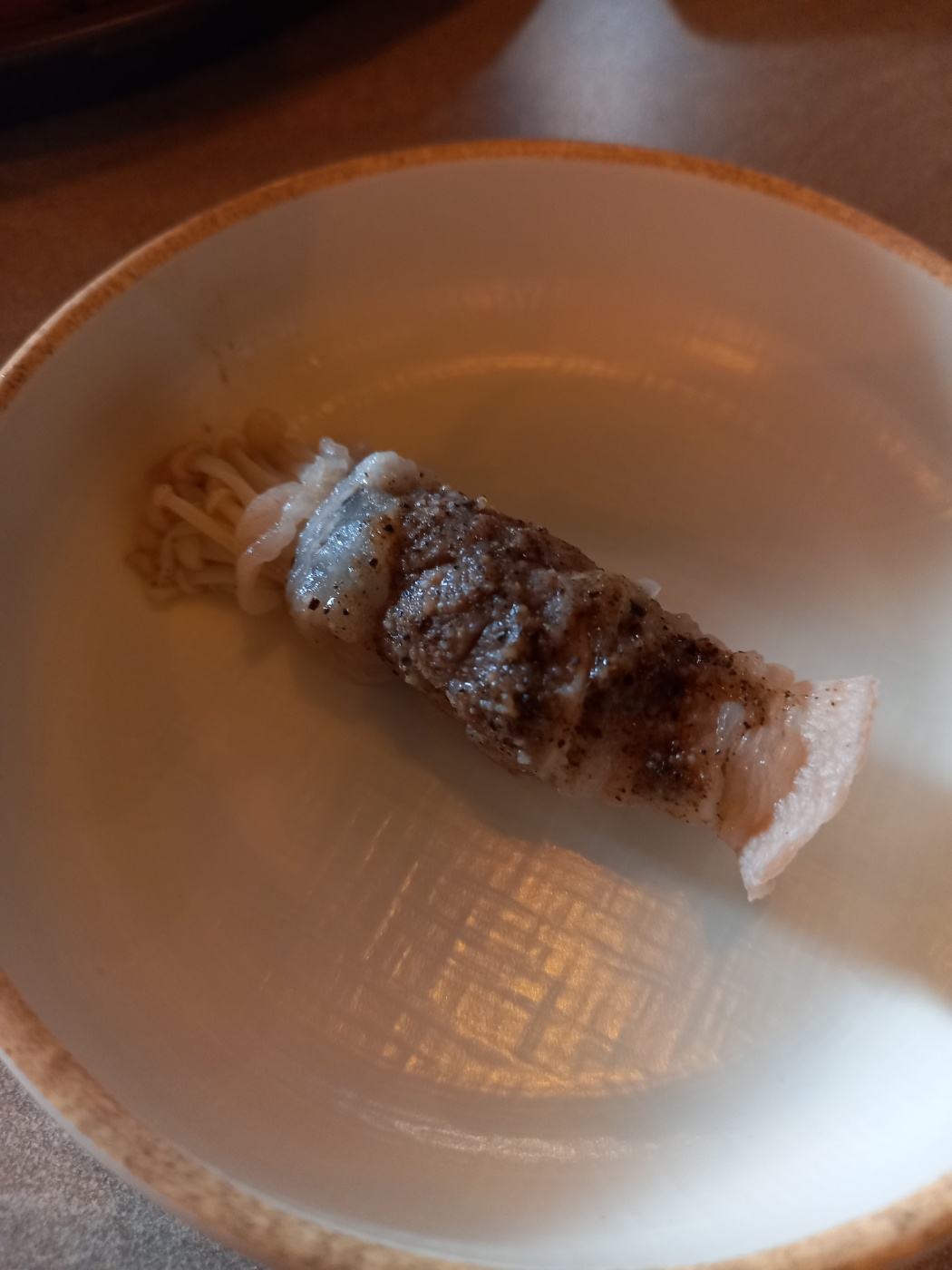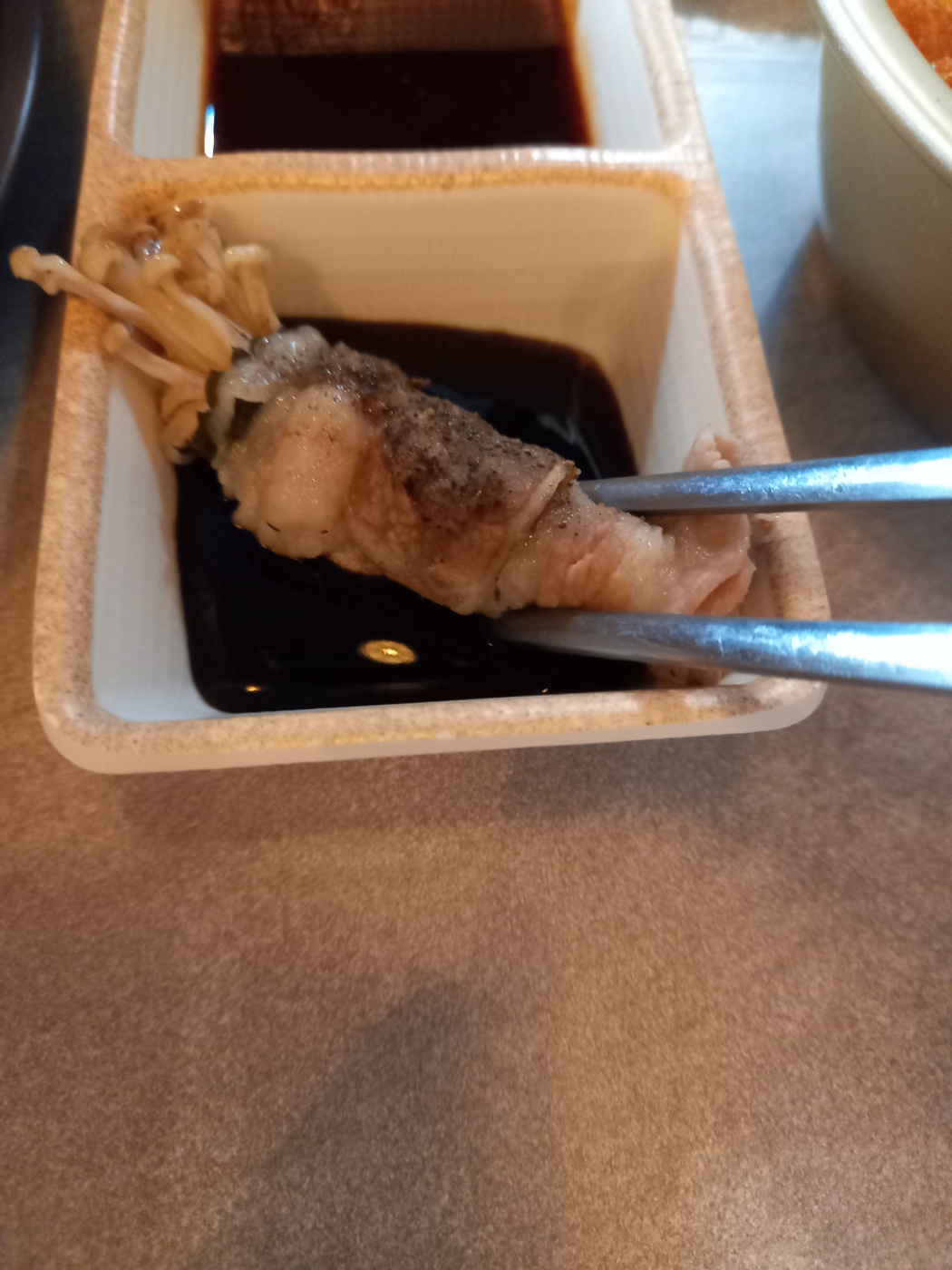 밑간도 살짝 되어져있는데 소고기가 부드럽고 팽이버섯의 식감이 잘 어울리더라고요.