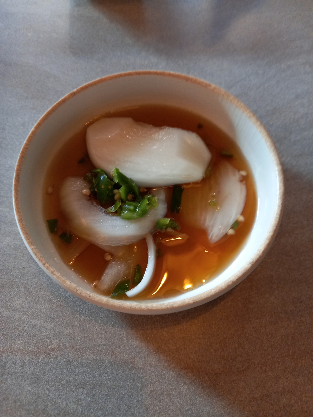 양파절임에 고추가 들어가있어서 더욱 맛있었어요.