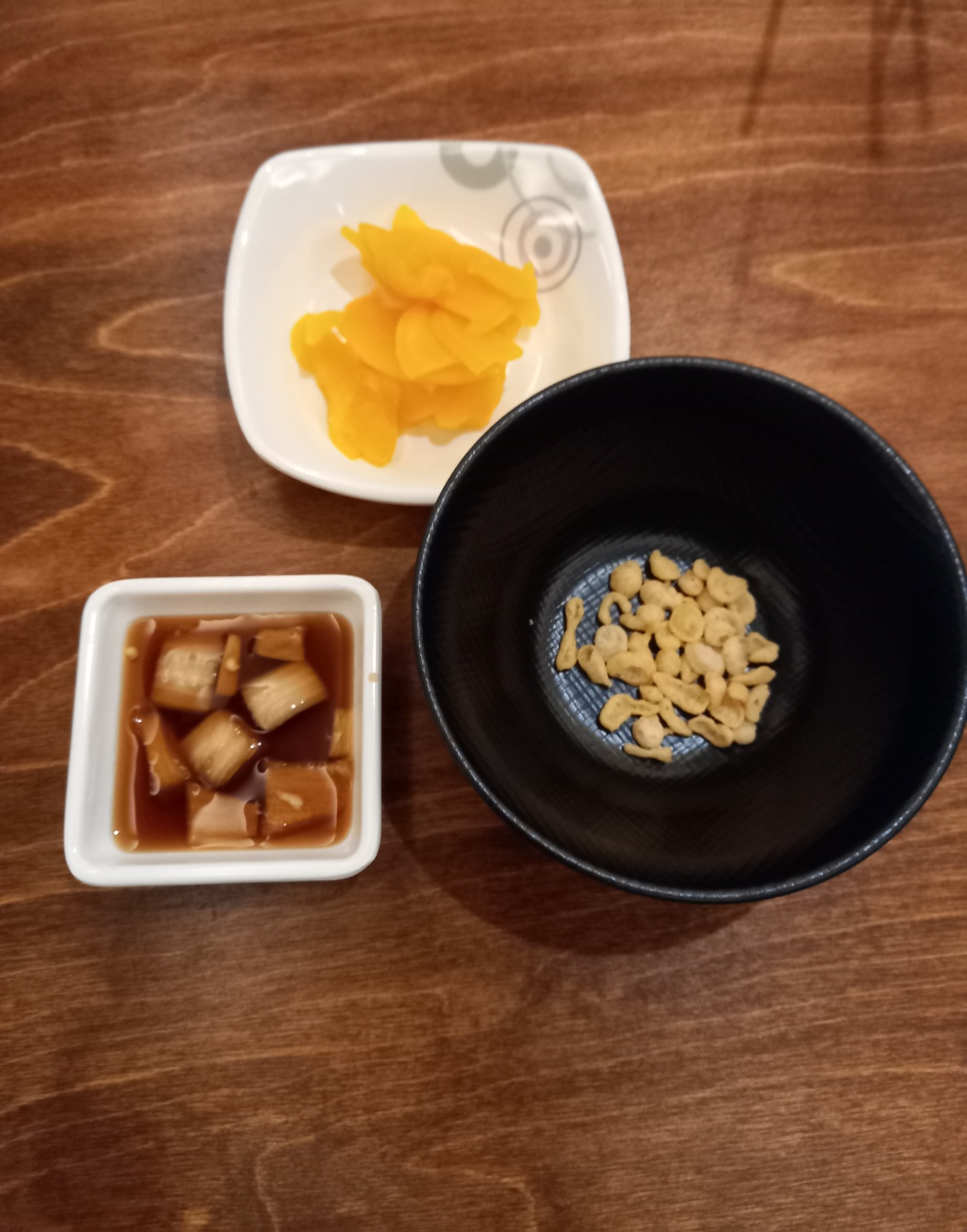 밑반찬으로는 오뎅과 잘 어울리는 간장소스와 단무지를 주시고