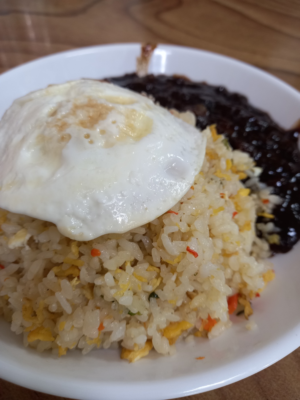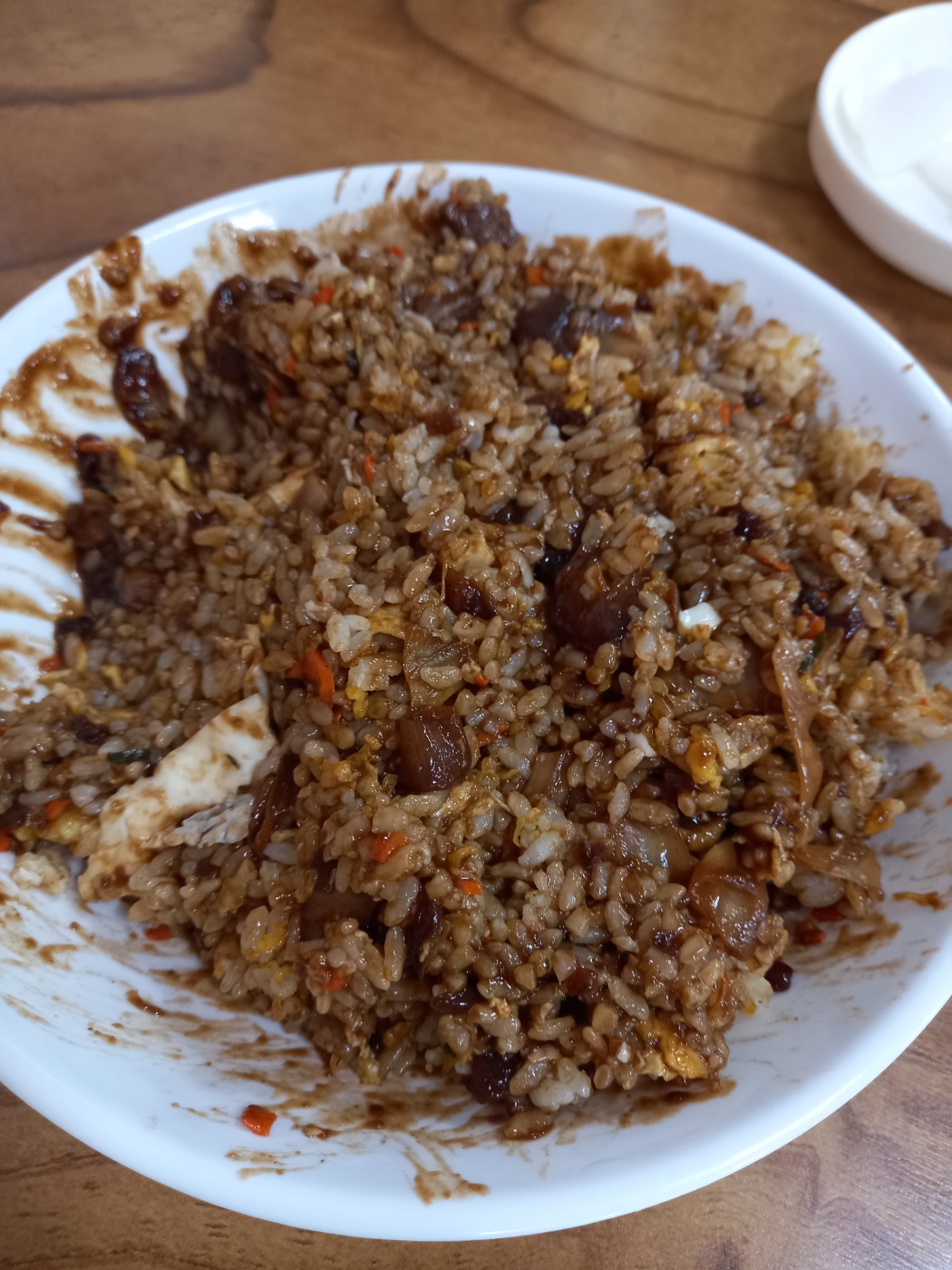 볶음밥을 짜장소스에 비볐는데 비비고 나니까 양이 너무 많아서