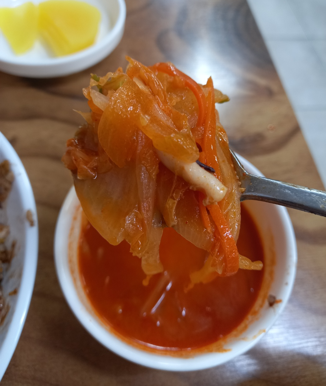 저는 제가 좋아하는 양파와 단무지를 가져왔습니다.