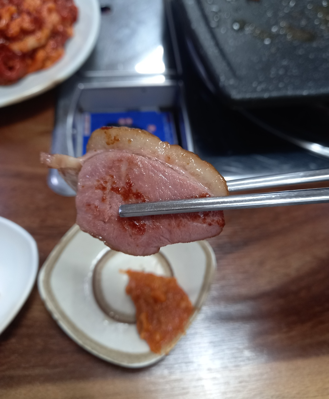 그리고 주문한 오리양념구이가 나오기전 맛있는지 한번 먹어보라고