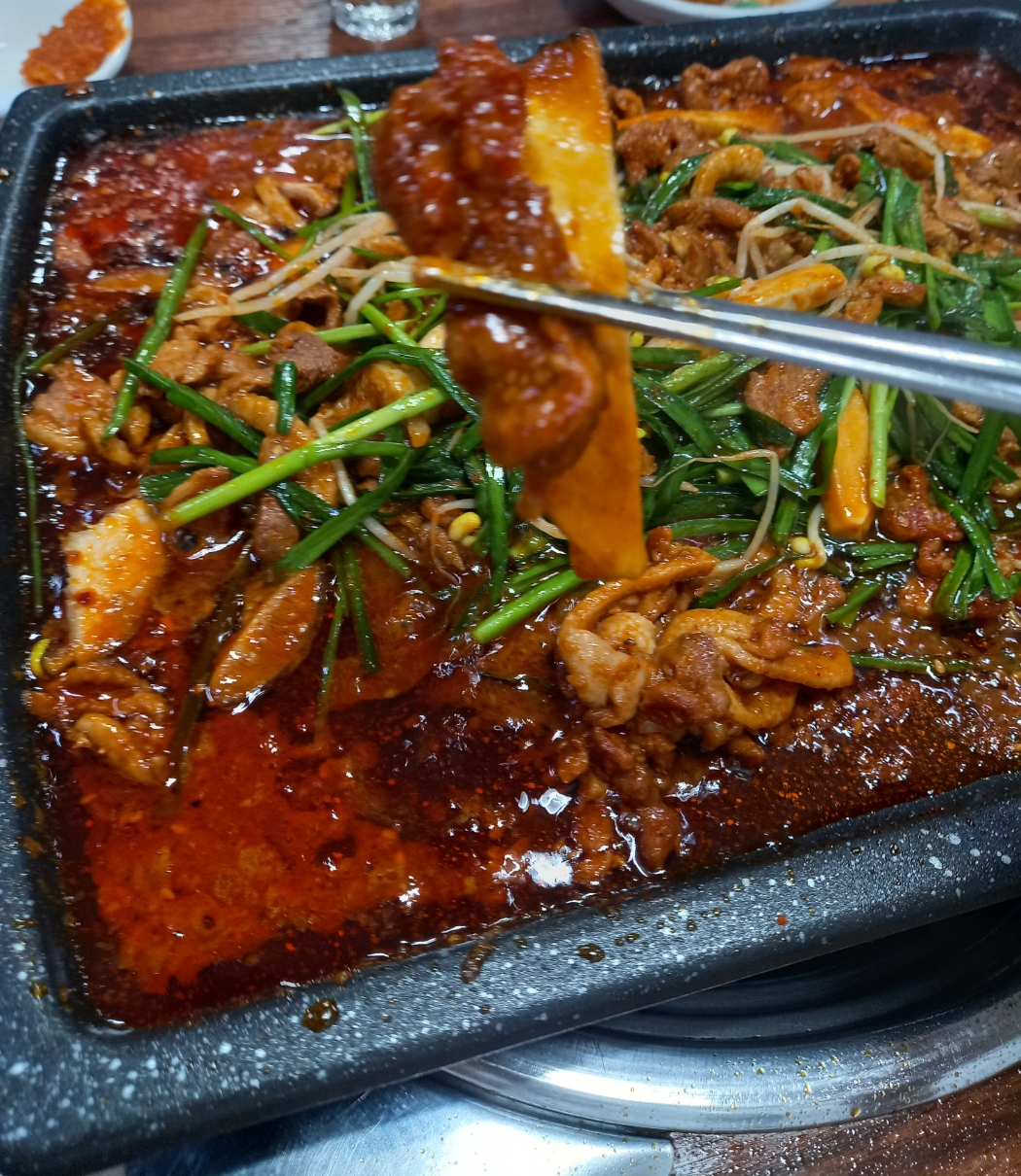 오리양념구이의 냄새와 비주얼이 정말 맛있어보여요.