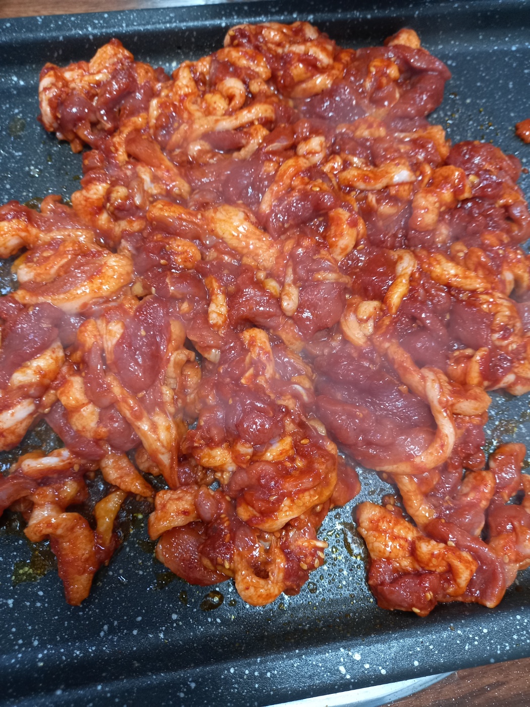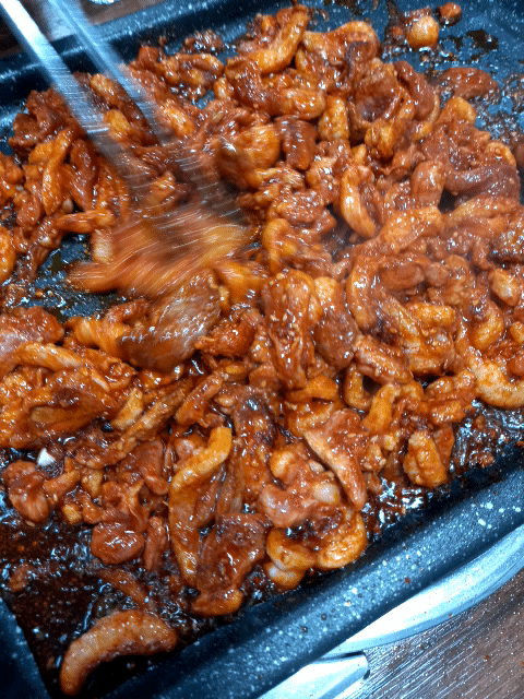 오리훈제를 먹고있으니 주문한 오리양념구이가 나왔습니다.