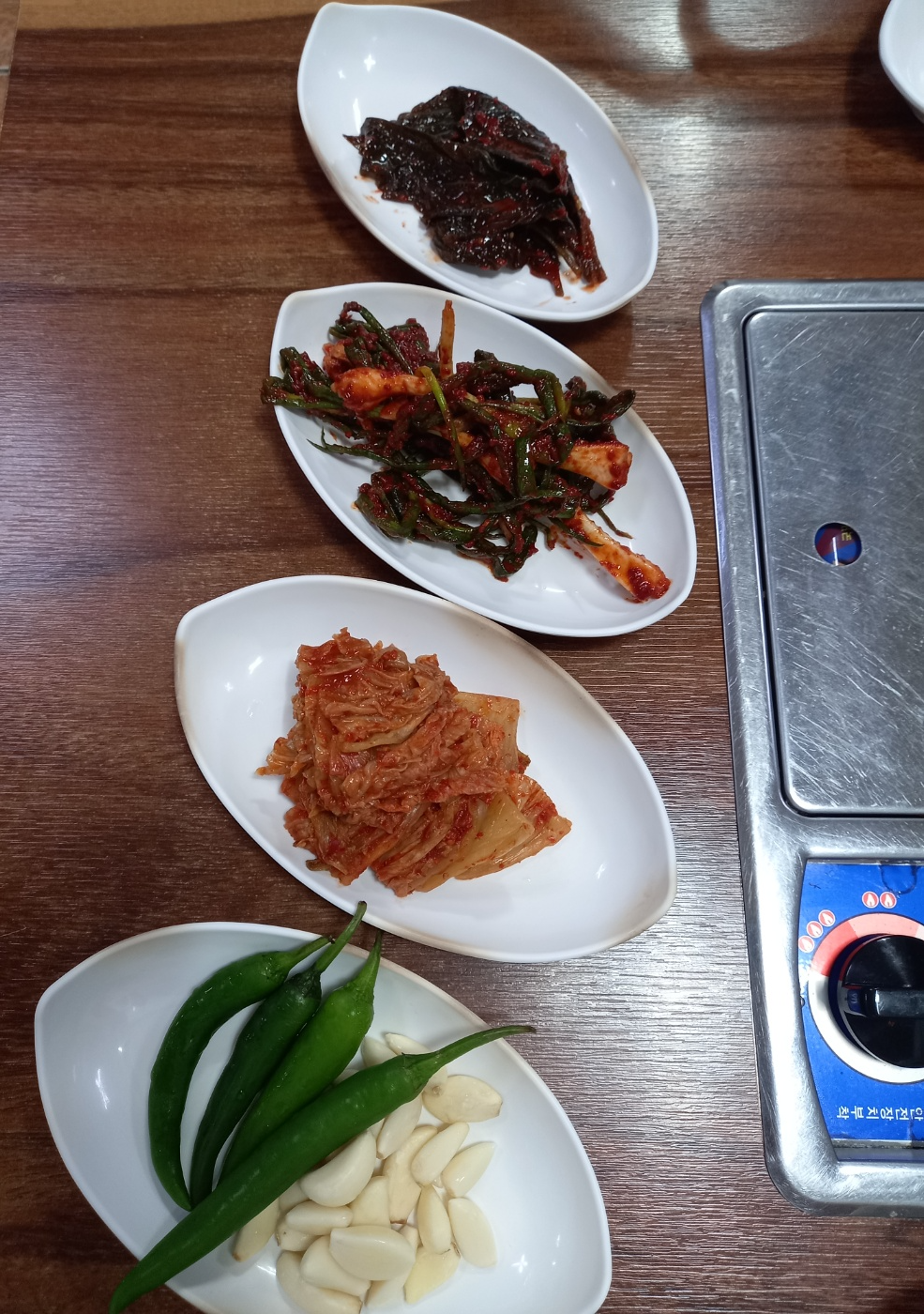 오리고기와 함께 먹으면 더욱 맛있는 밑반찬들이네요.