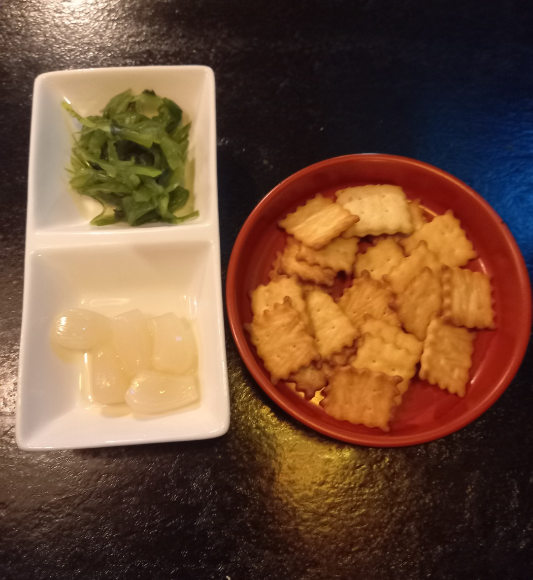 주문을하고 밑반찬으로 락교와 크래커과자가 나옵니다.