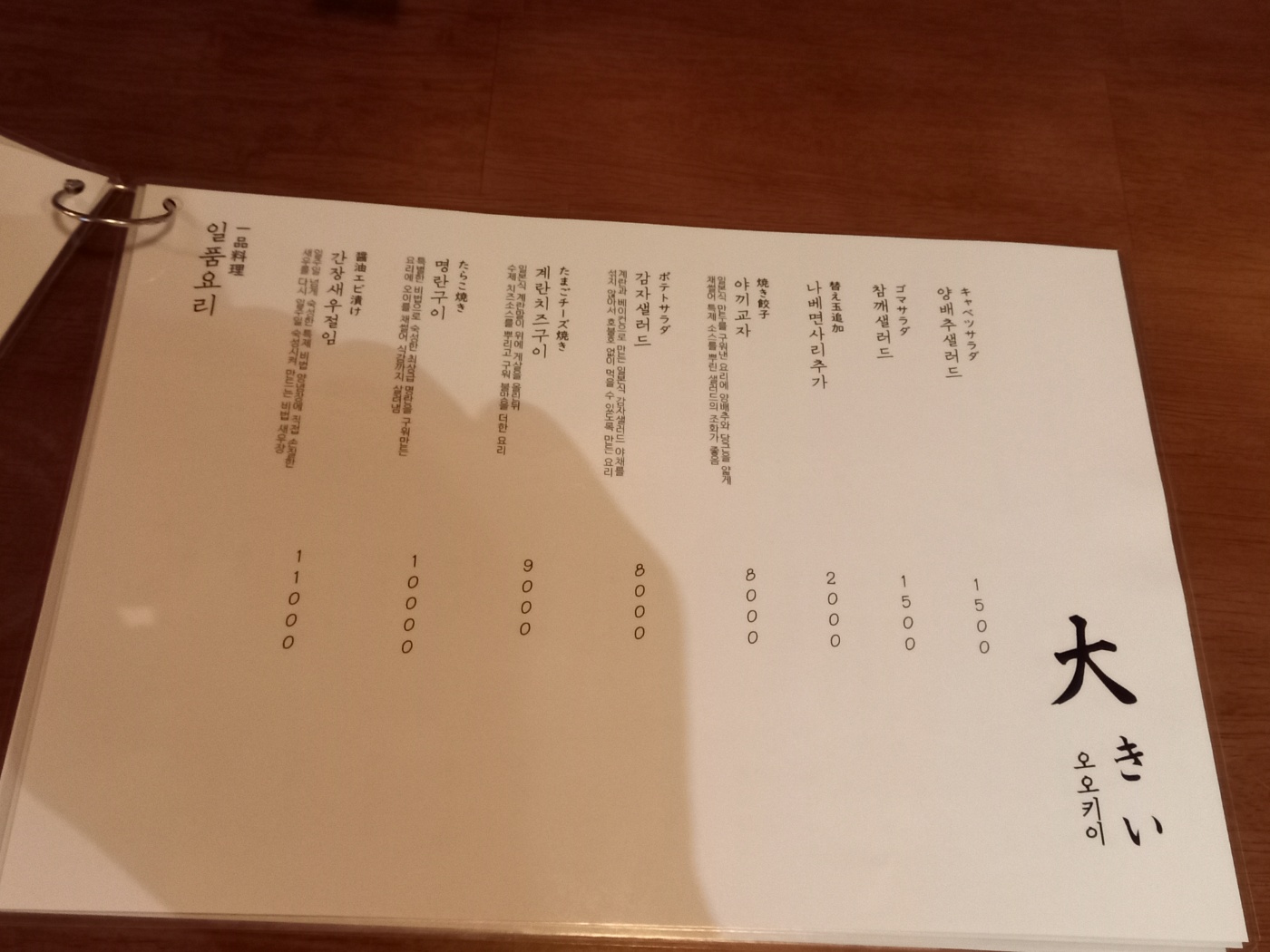 이자카야 메뉴 같으면서도 한식메뉴인거 같습니다.