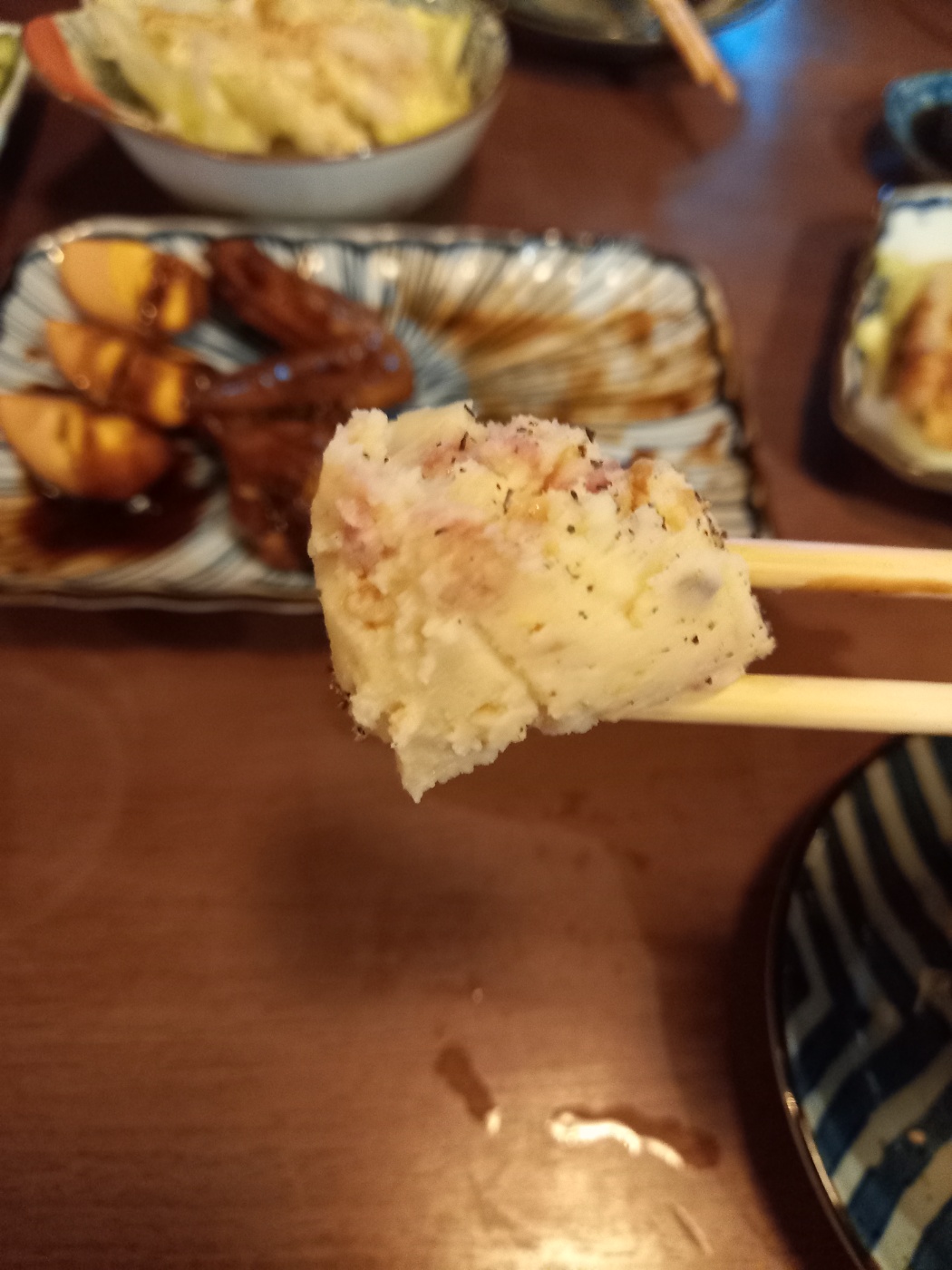 감자샐러드안에 쫄깃한 식감의 메뉴가 들어가있는데 맛있습니다.
