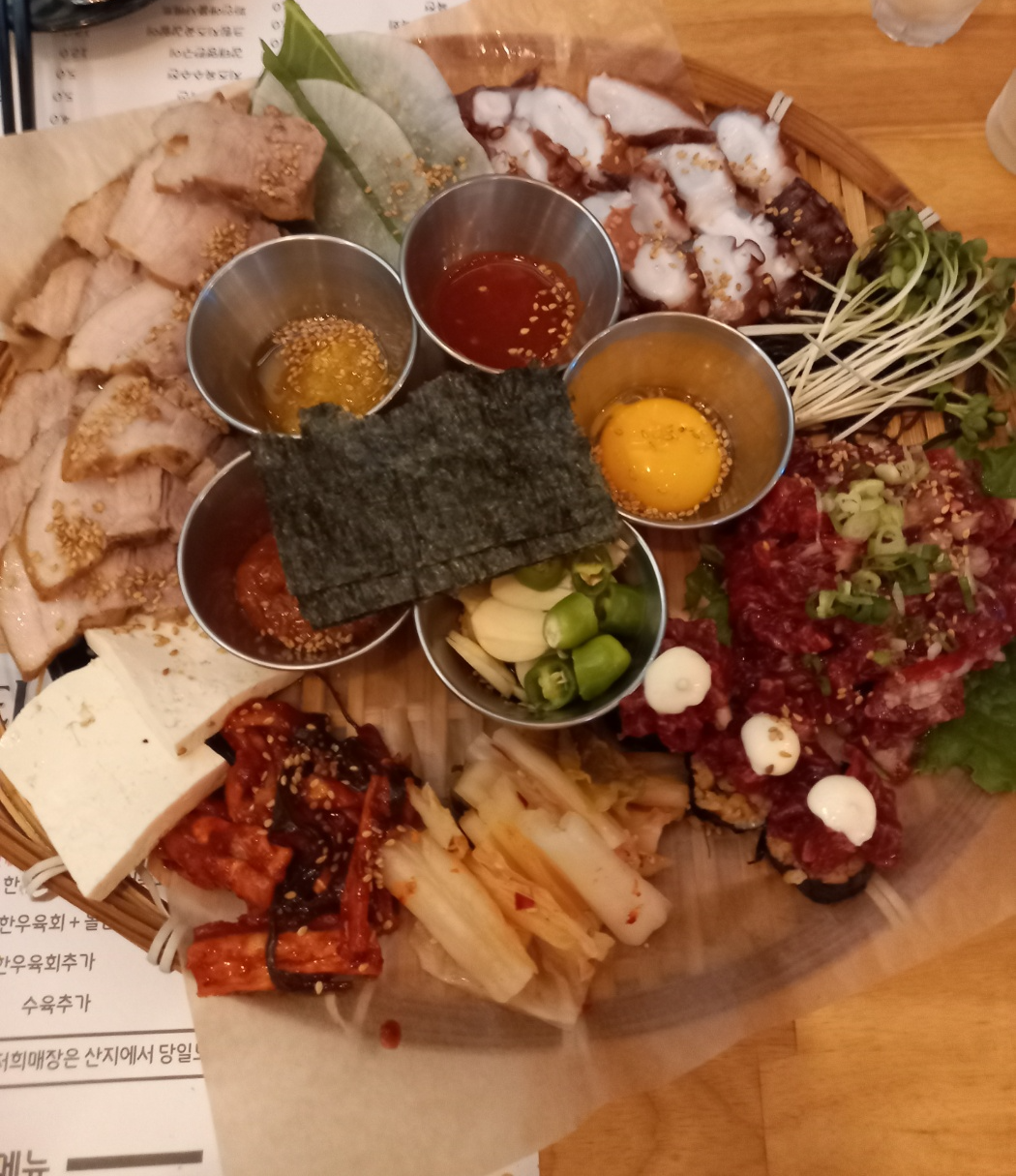 육회 문어숙회 보쌈을 한번에 먹을 수 있는 가성비 메뉴입니다.