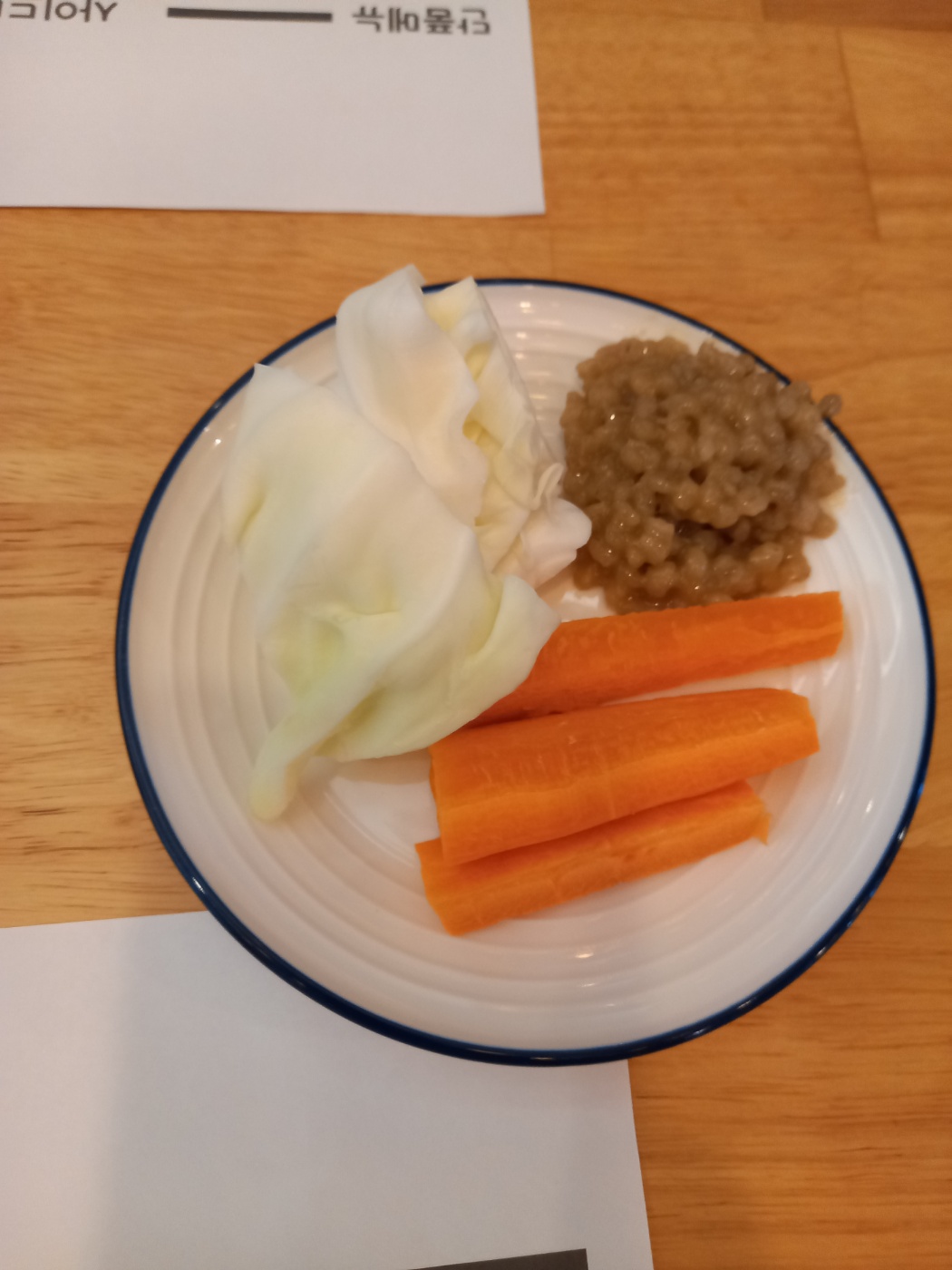 밑반찬은 양배추 당근 소고기무국이 나왔는데,