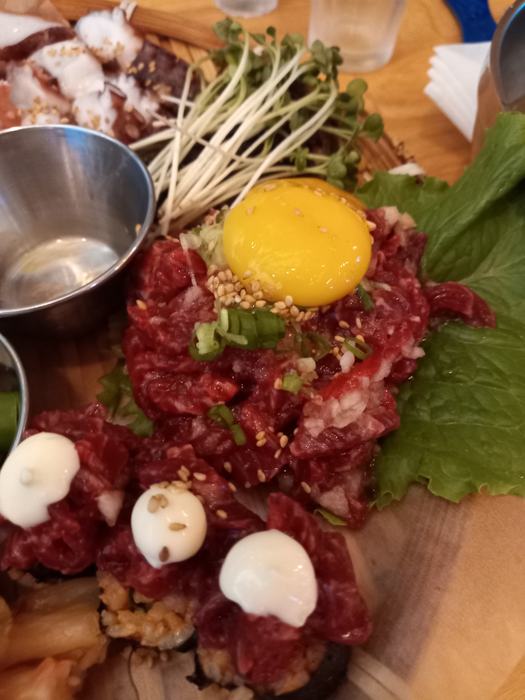 신선한 육회와 보쌈 문어숙회 비주얼이 매우 좋습니다.
