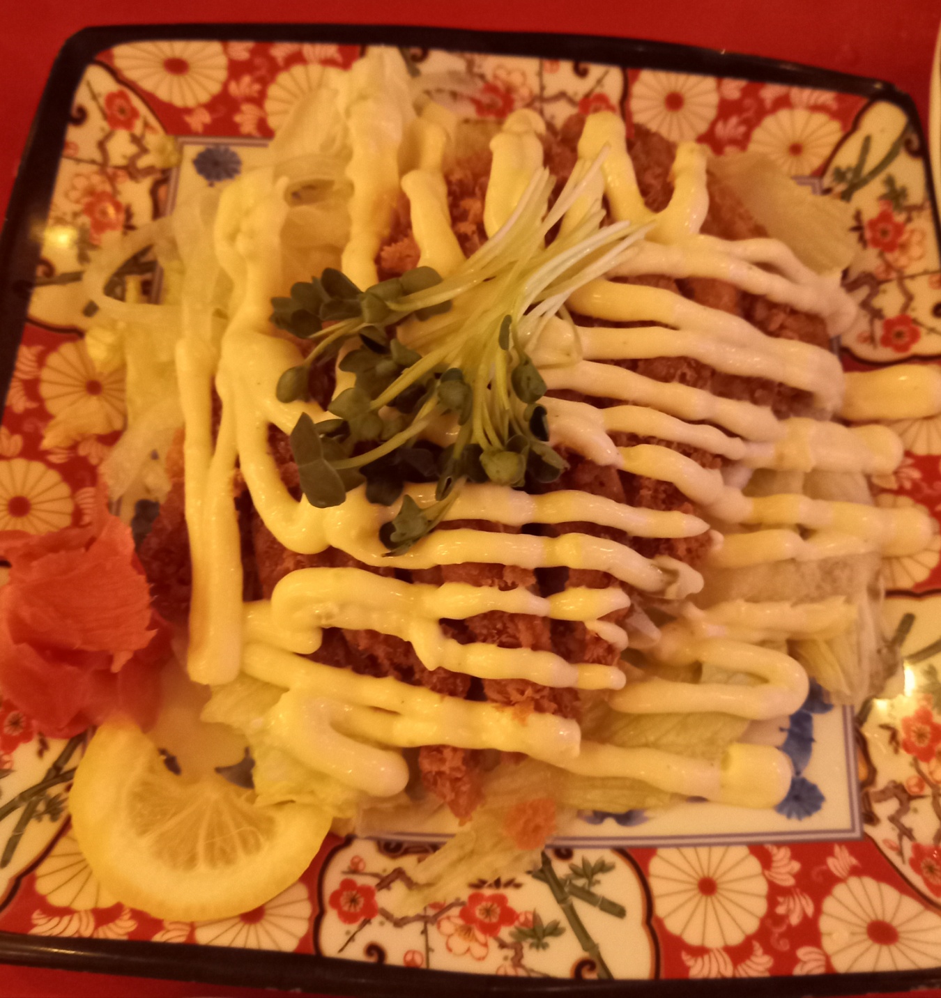 맛은 튀긴 감자에 데리야끼소스와 마요네즈가 뿌려져있어서 맛있습니다.