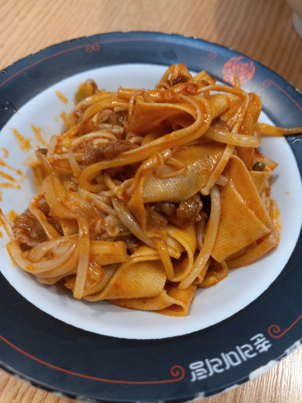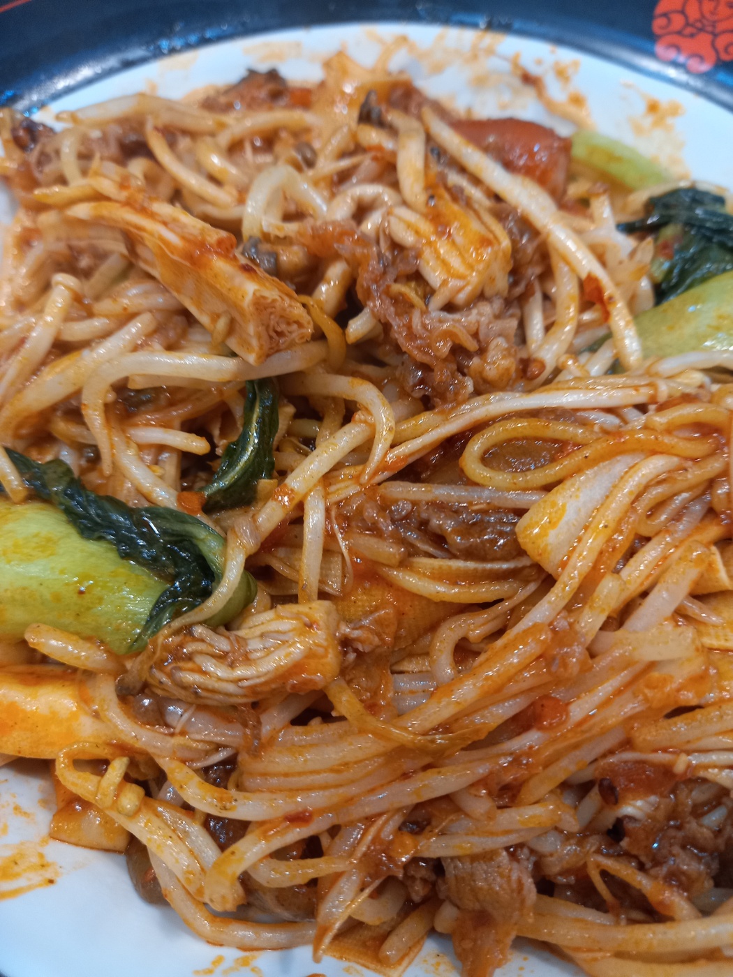 건두부 버섯 소세지 청경채 소세지 감자당면 고기등 여러가지 재료들이 마라소스에 볶아져서