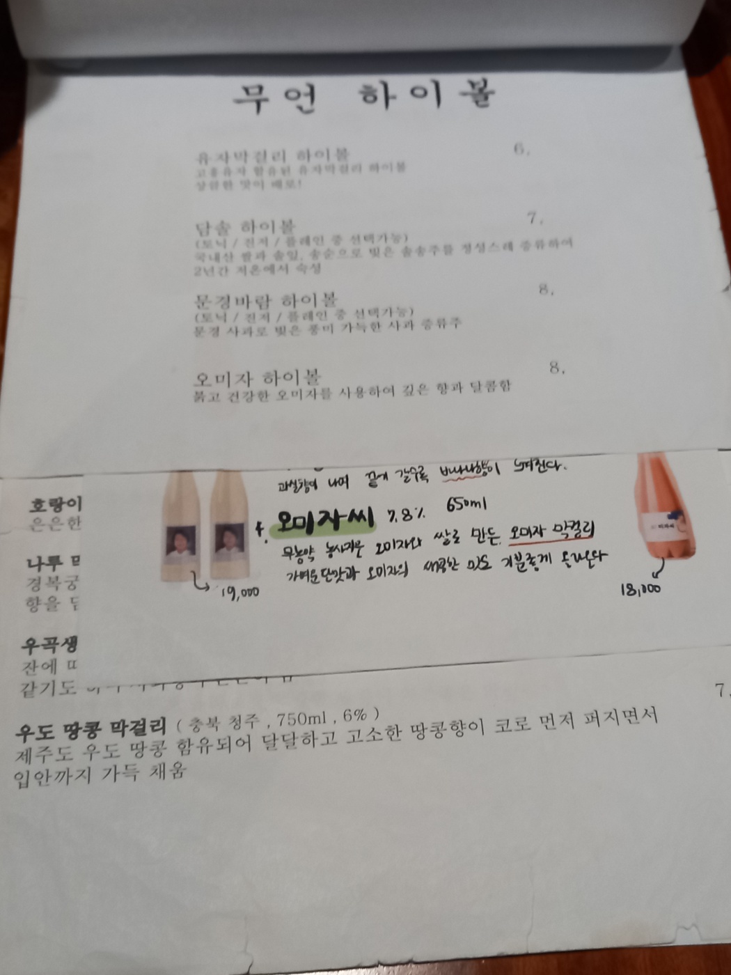 안주류와 하이볼 막걸리 전통주를 판매하고 있습니다.