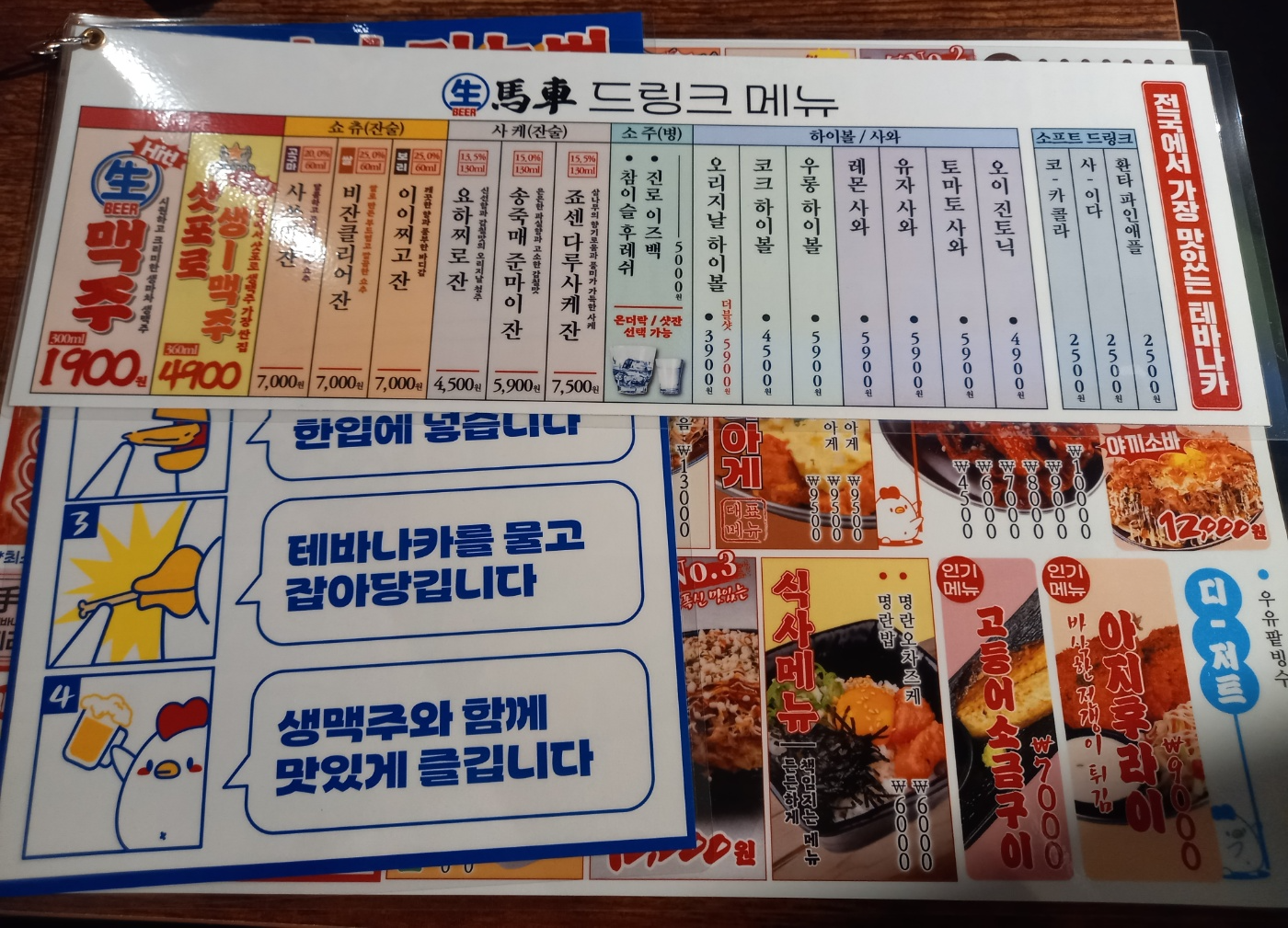 테바나카를 메인으로 다양하고 저렴한 안주메뉴를 판매하고 있습니다.