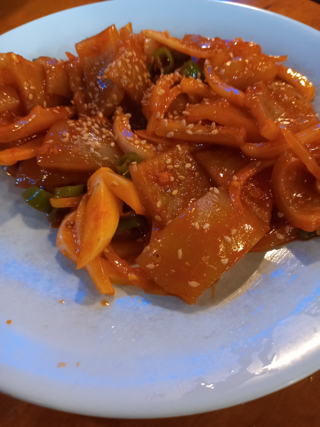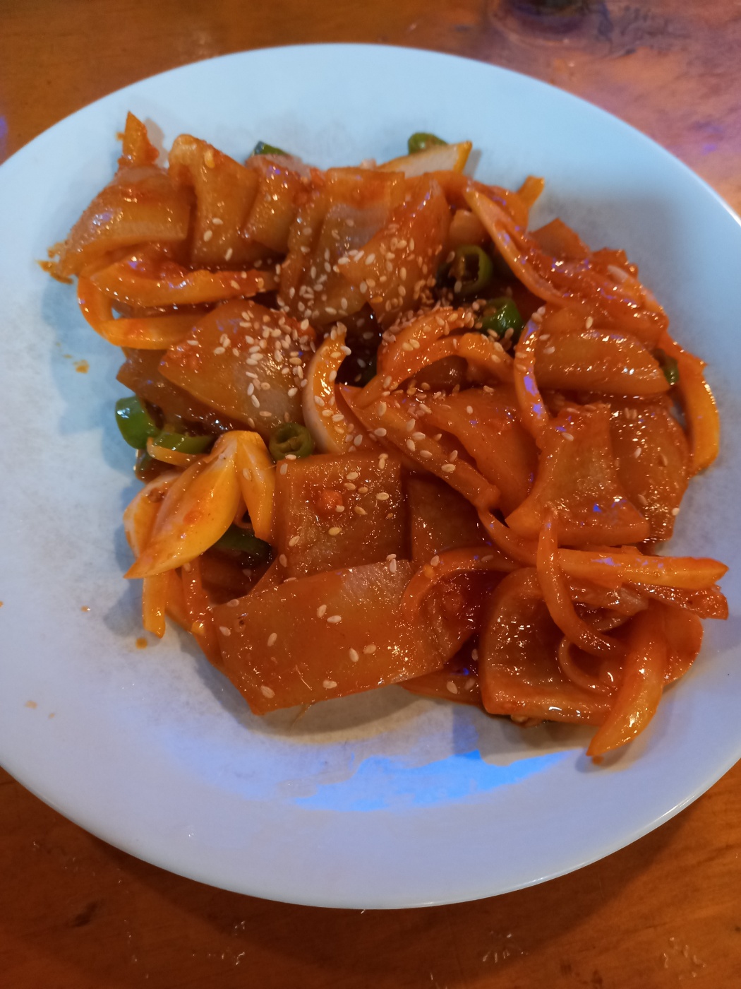 저는 매운맛을 좋아하는데 매콤한맛의 돼지껍데기가 아니고 약간 떡볶이 소스같은 맛입니다.