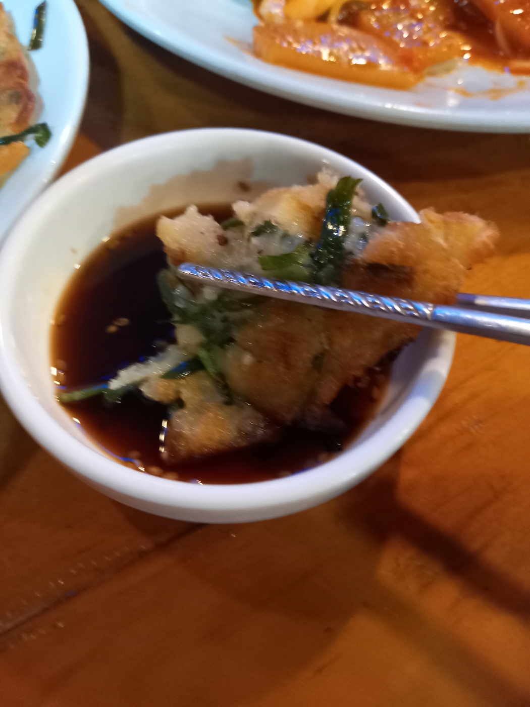 해물파전 담백하면서 꼬신맛과 짭짤한 간장소스의 조합이 좋습니다.