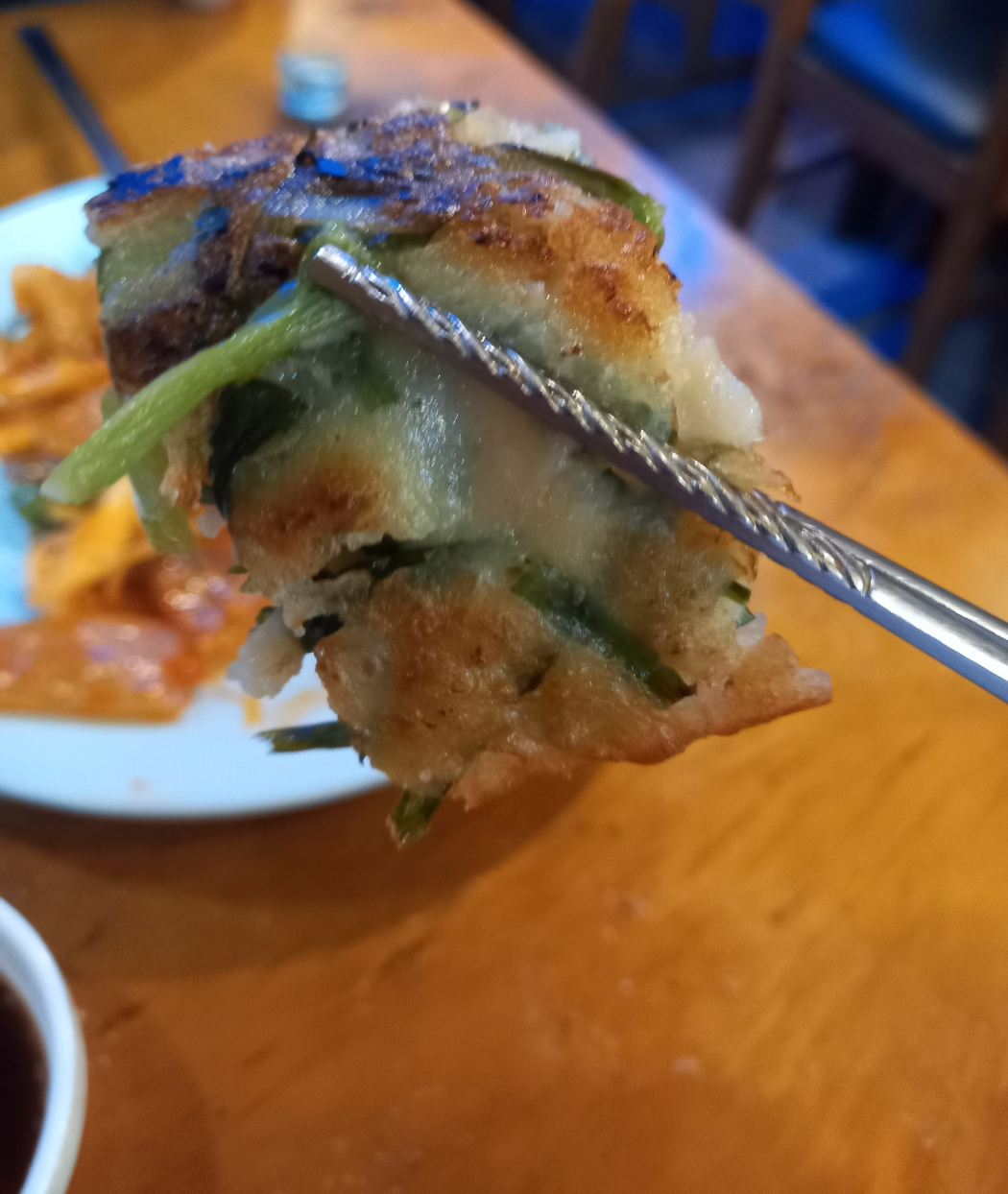 돼지껍데기를 먹고있으니 주문한 해물파전이 나왔습니다.