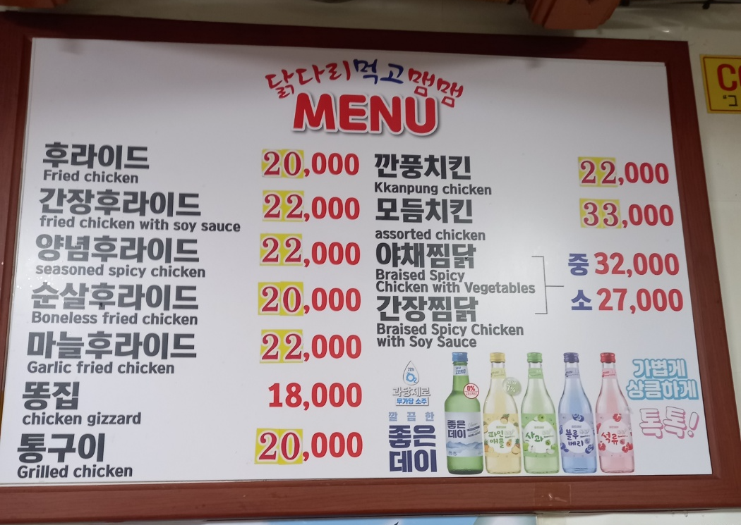 닭다리먹고맴맴 메뉴판입니다.