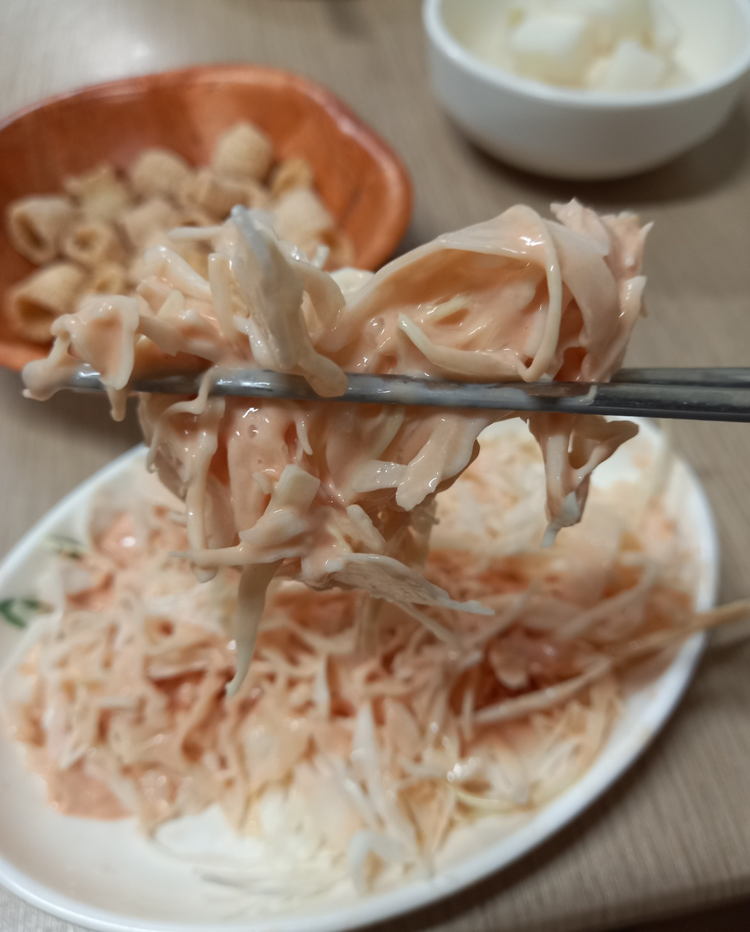 양배추샐러드의 소스도 제가 좋아하는 케찹과마요네즈를 잘 섞은 소스입니다.