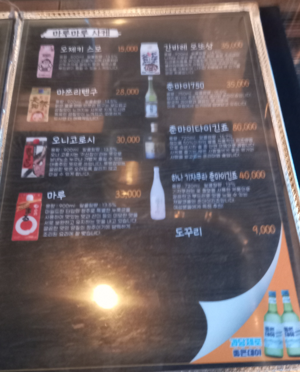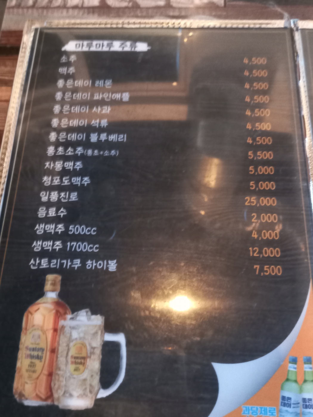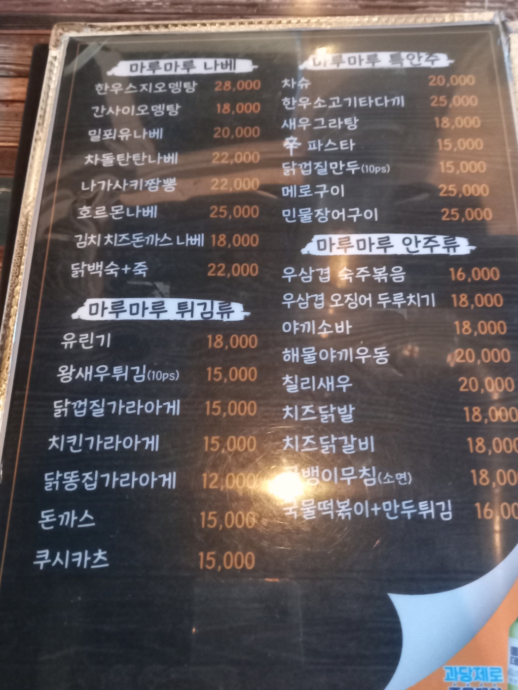 동대신동 마루마루 메뉴판입니다.