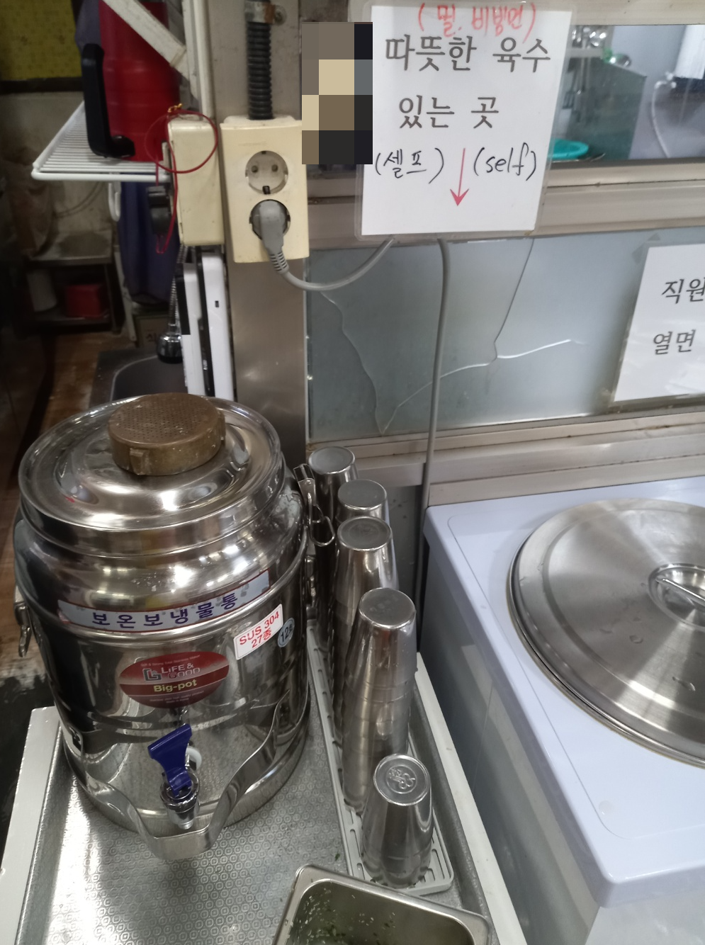 맛이 깔끔한 육수를 셀프로 이용해서 드실 수 있습니다.