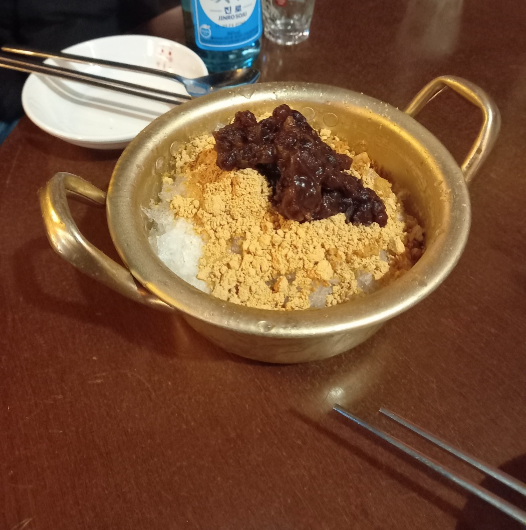 담백한 인절미 가루에, 달달한 팥이 많이 들어 있어서 정말 브랜드있는 팥빙수를 먹는거 같았어요.