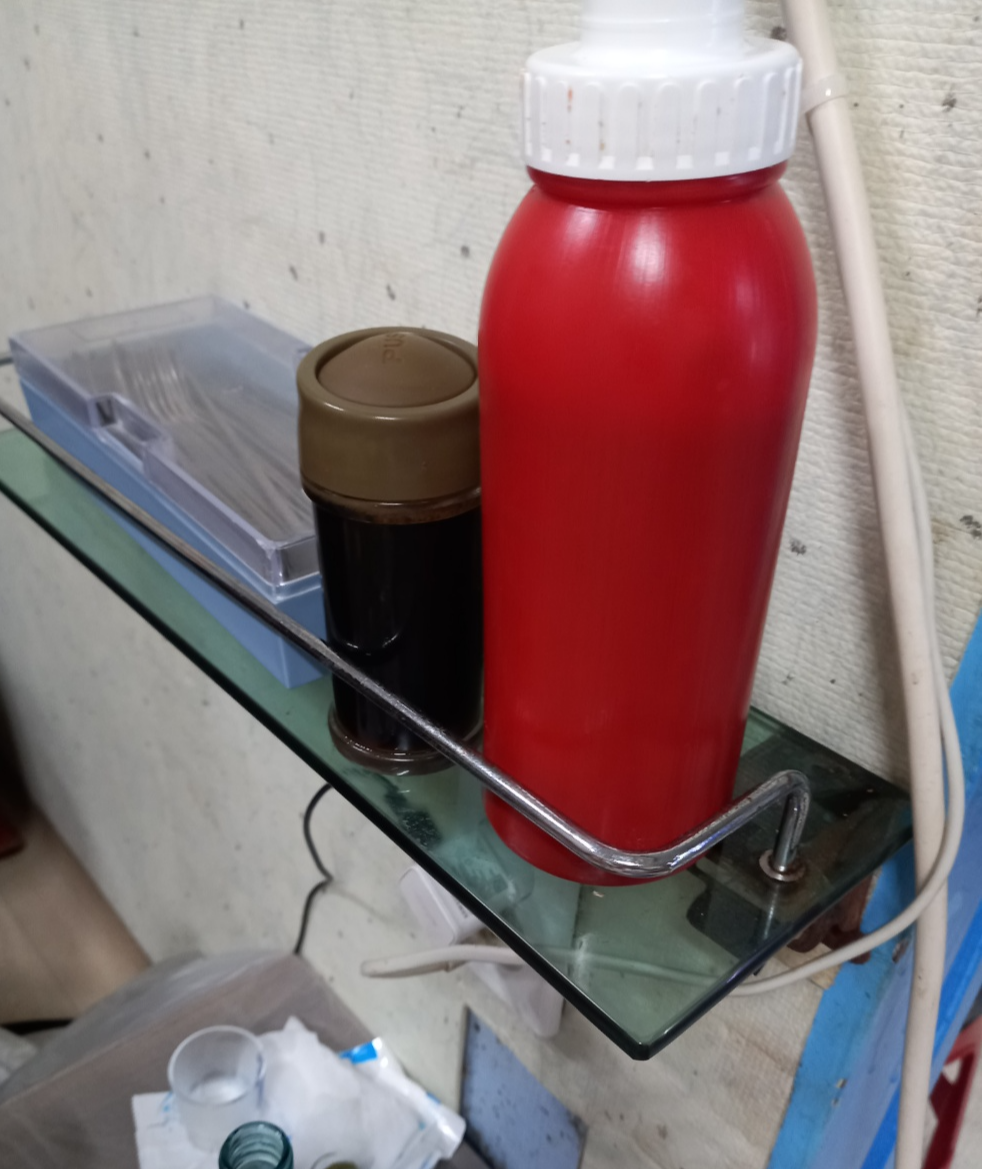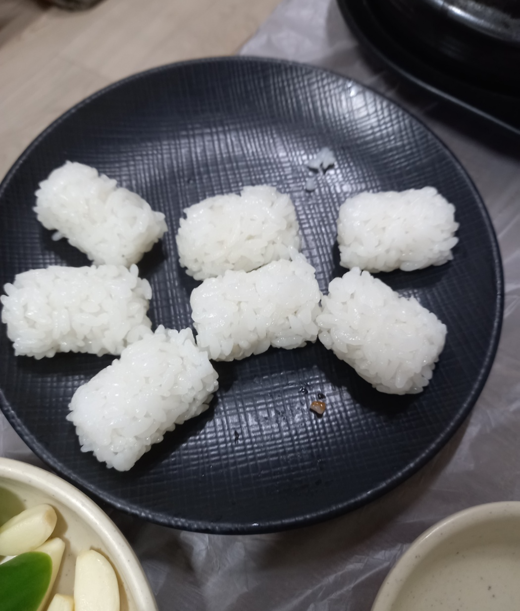 테이블 옆쪽에 초장과 간장이 있습니다.