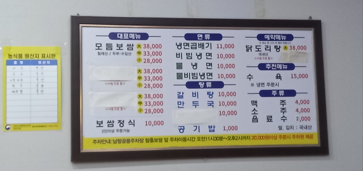 함흥보쌈사계절냉면 메뉴판입니다.