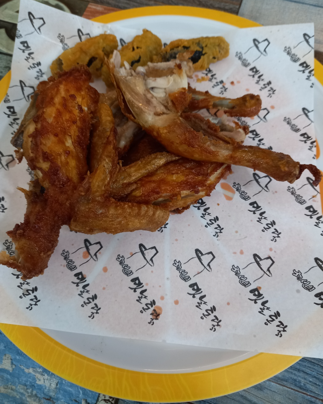저는 혼자서 먹으려고 옛날통닭 한마리와 김말이튀김을 주문했습니다.