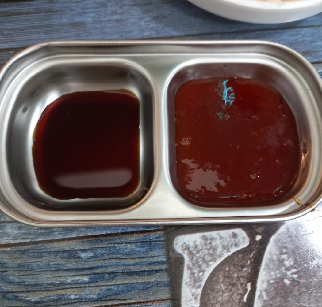 매콤달콤한 양념소스와 짭쪼름한 소스가 나오네요.