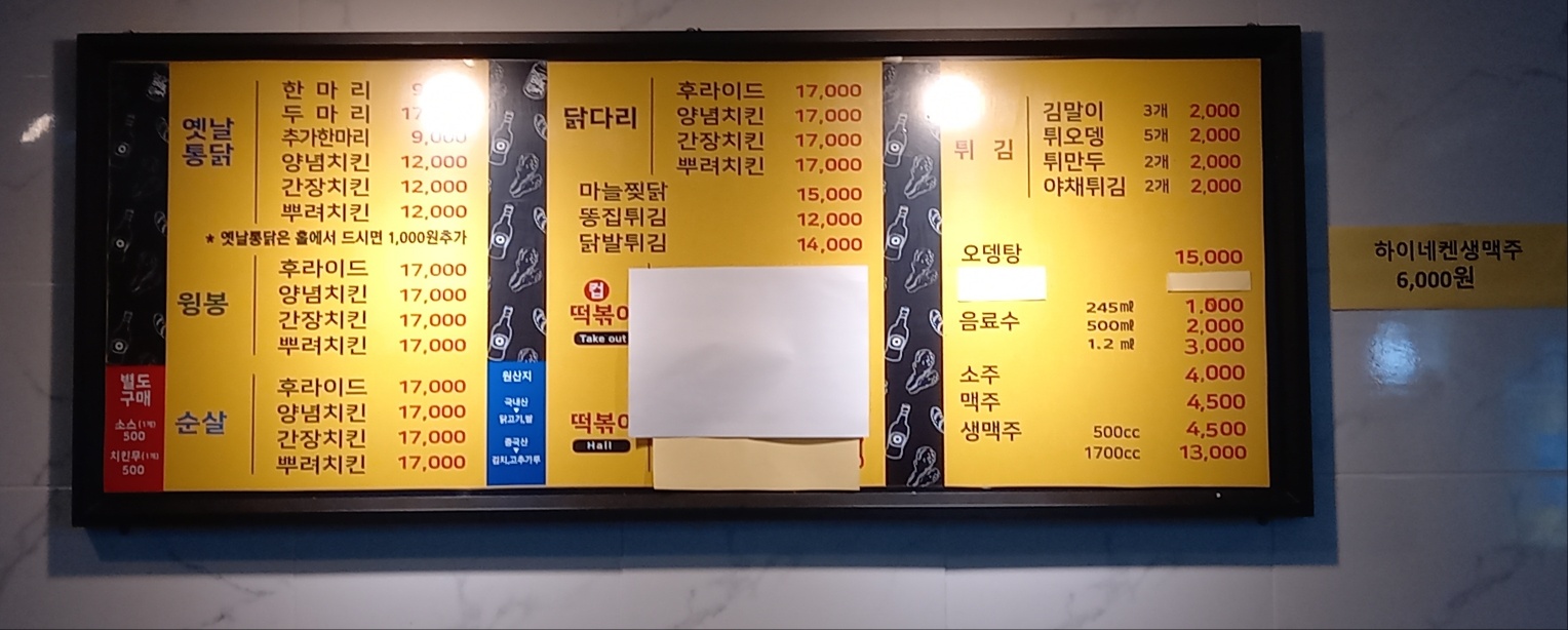 옛날통닭은 포장으로 가져가시면 더 저렴하네요.