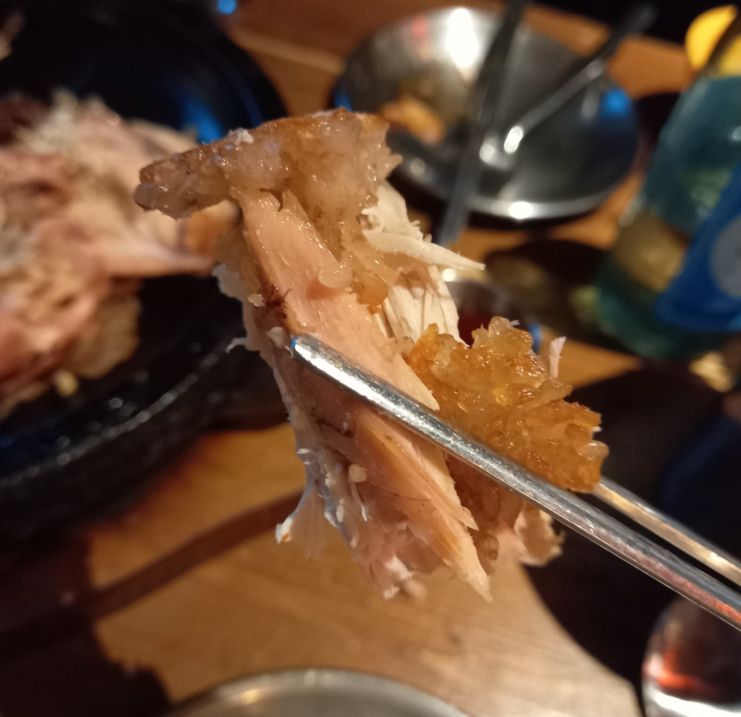 장작에 구워서 기름기 쫙 빠져 담백한맛이 좋았습니다.