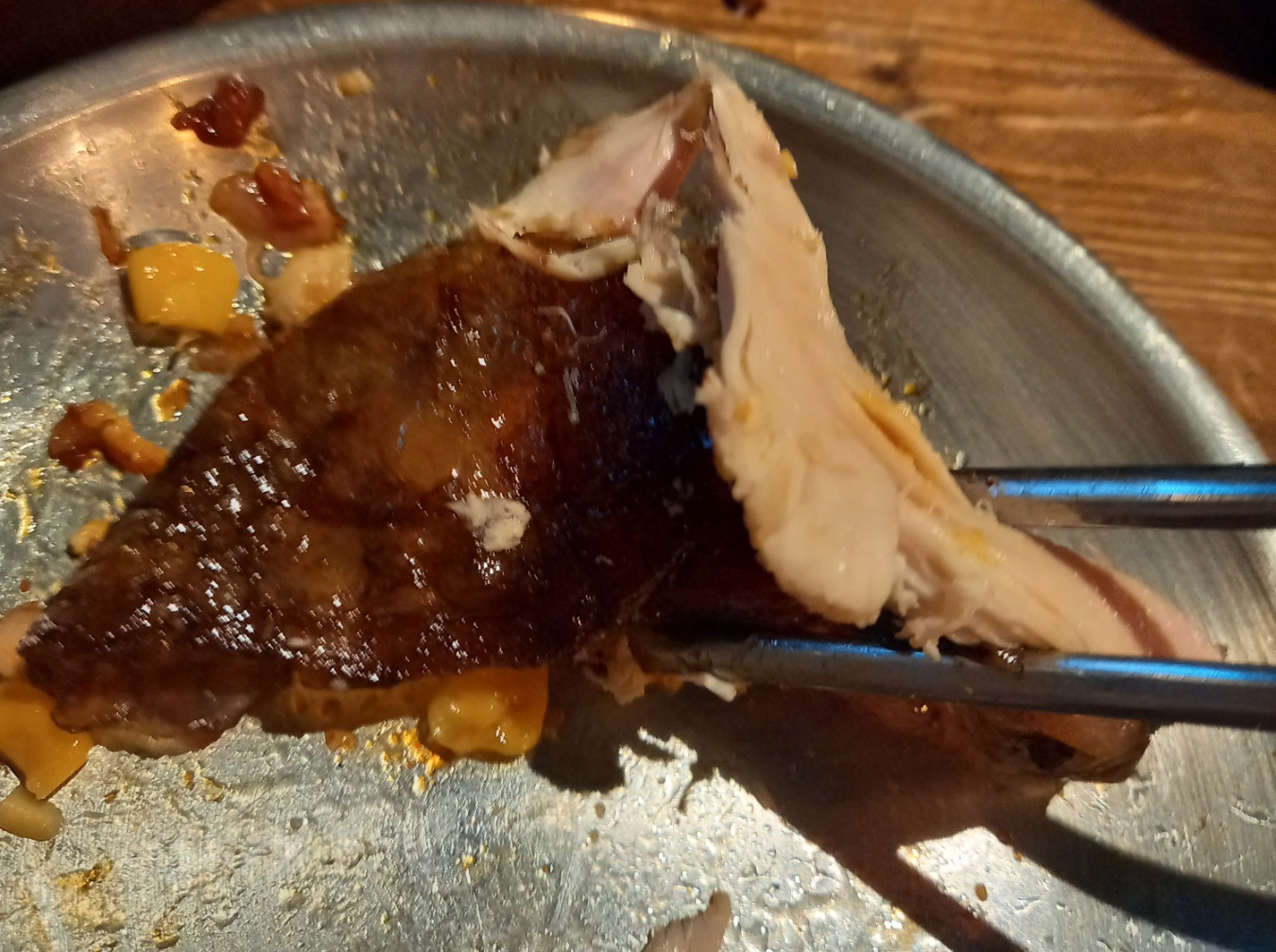 닭이 부드러워서 닭껍질이 술술 벗겨지더라고요.