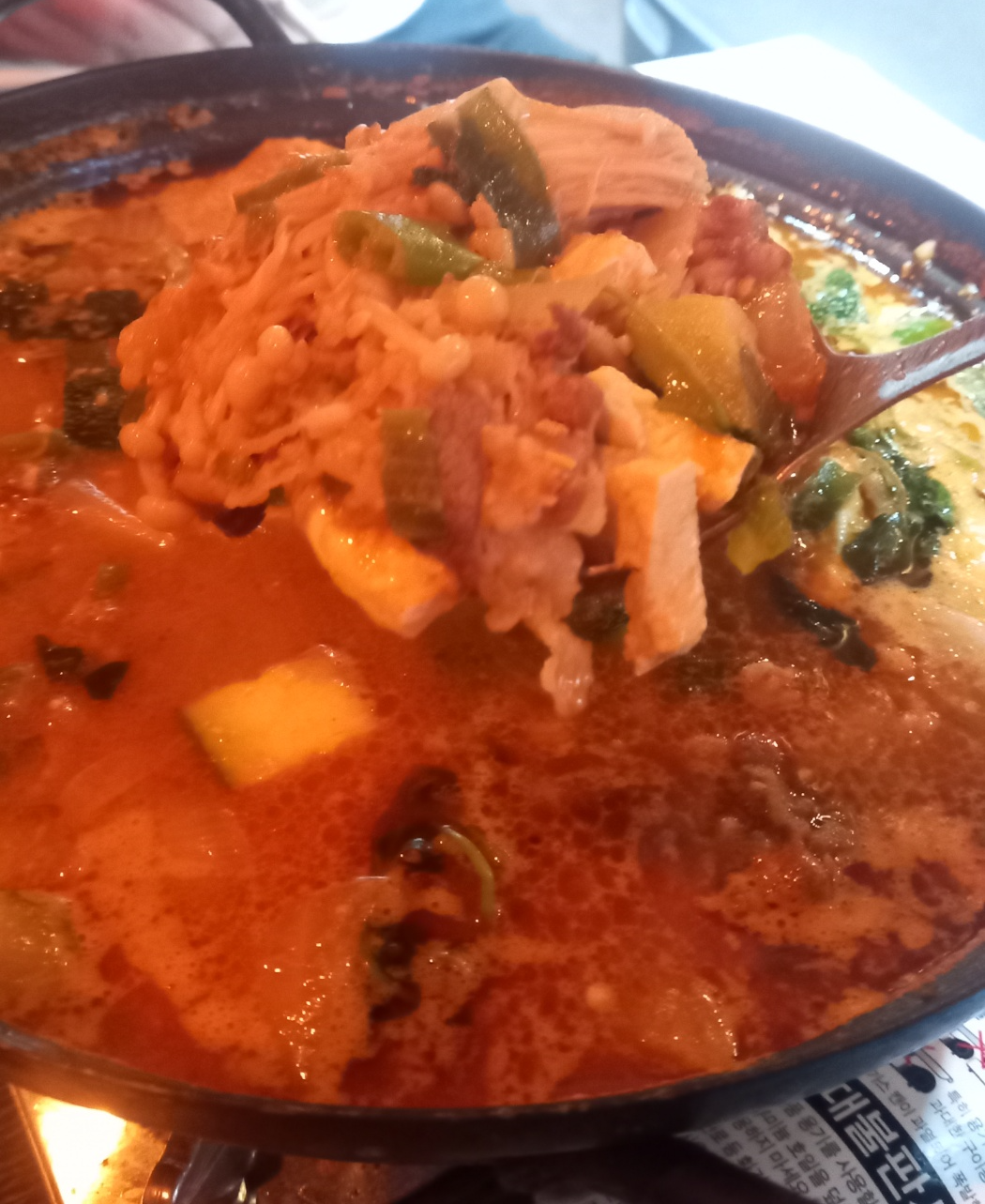 두부 방아 버섯 우삼겹 땡초등 다양한 메뉴들이 들어가 있습니다.
