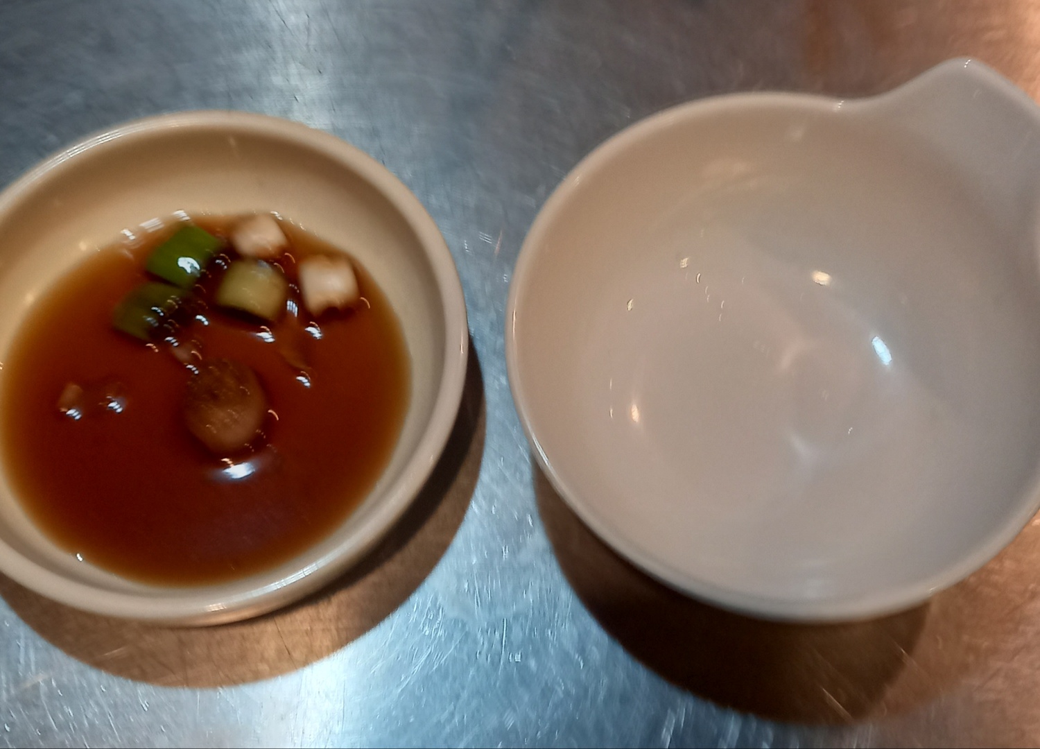 간장소스와 어묵 국물을 국자로 떠 먹을 수 있는 앞접시를 주십니다.