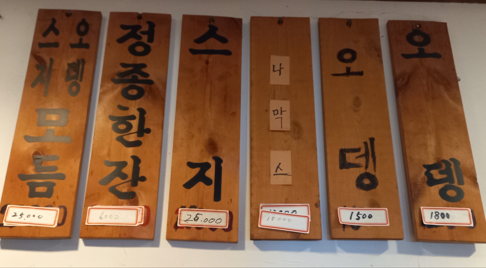 내부로 들어오면 한 테이블에 두개로 나눠 오뎅을 판매하고 있습니다.