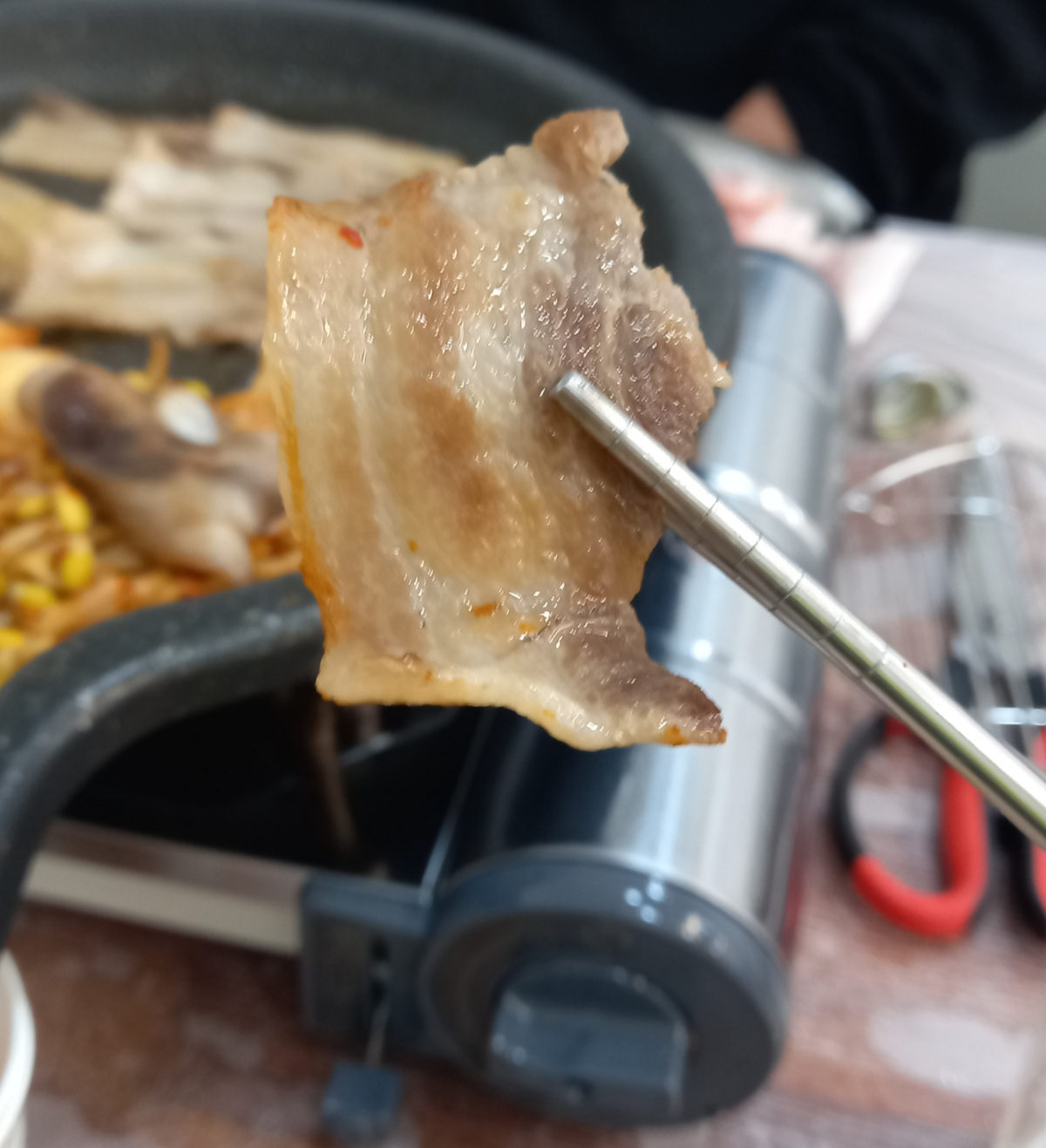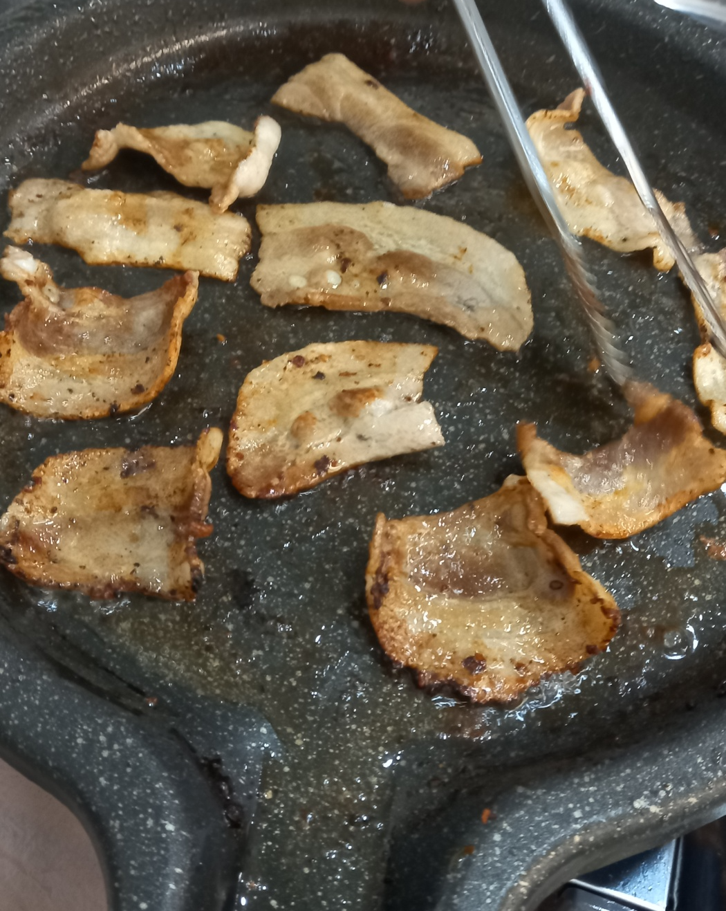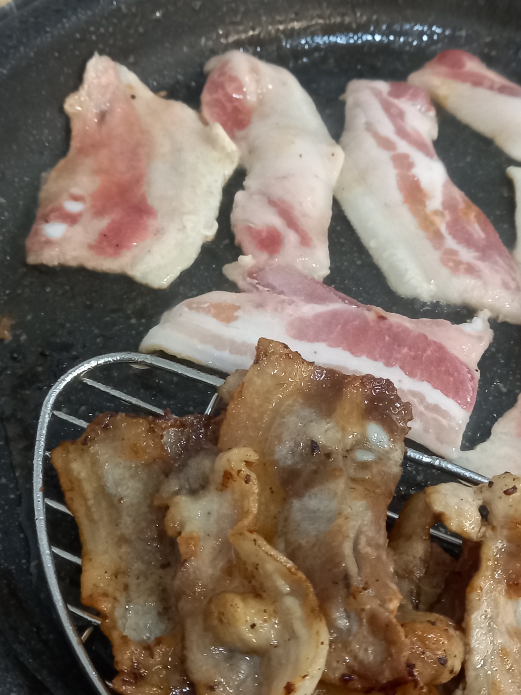 어느정도 지나니 급냉삼겹살이 맛있게 구워집니다.