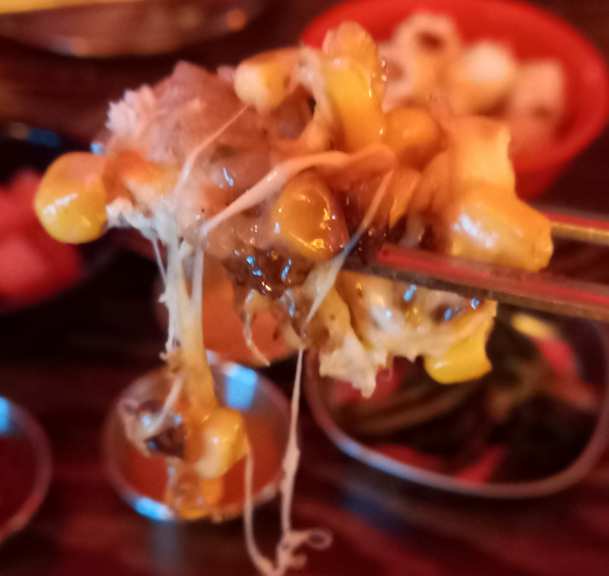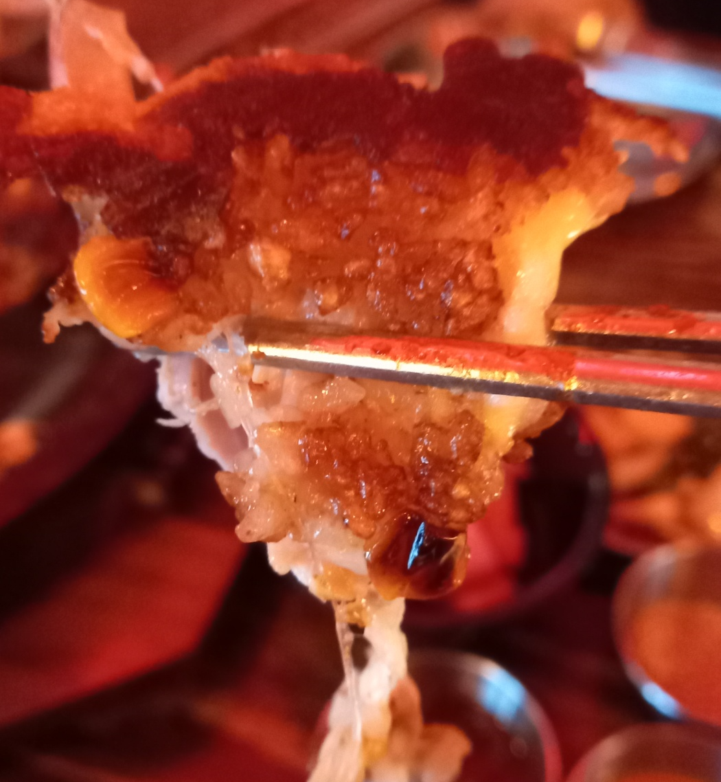 치즈가 푸짐하게 올려져서 나오고 밑으로 옥수수콘이 누룽지로 되어져 나옵니다.