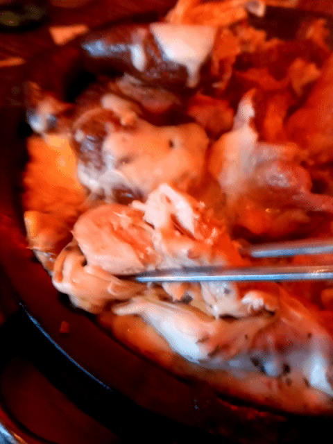 장작으로 구워서 나오기때문에 닭이 매우 부드럽습니다.