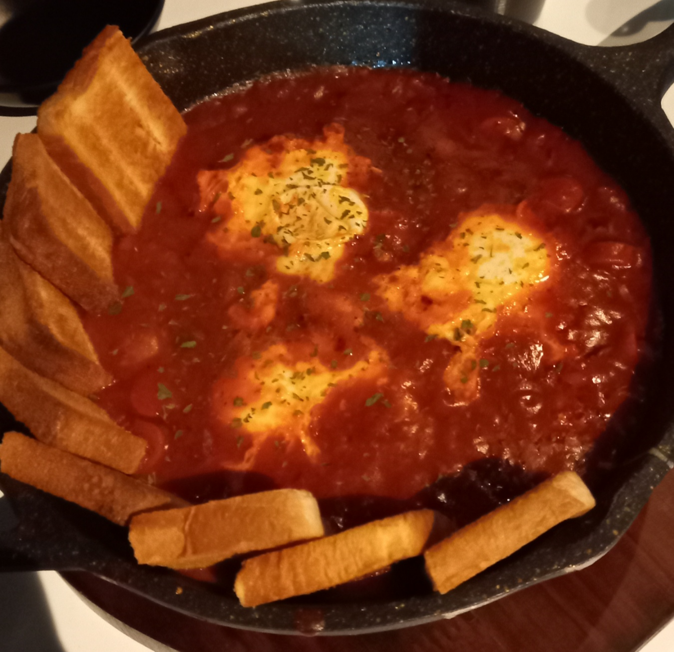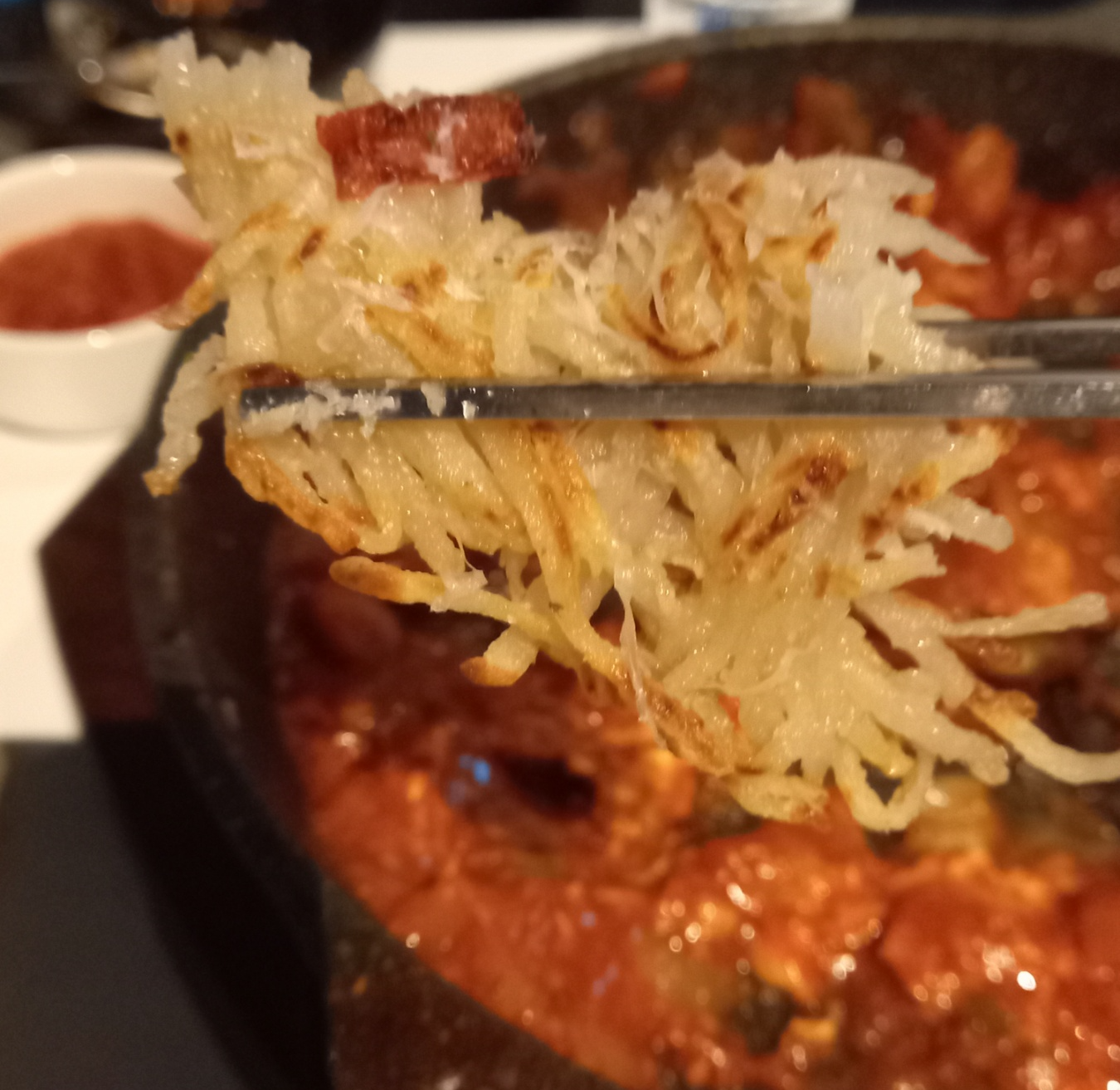 에그인헬과 베이컨치즈감자전 두가지 메뉴를 같이 드셔보세요.