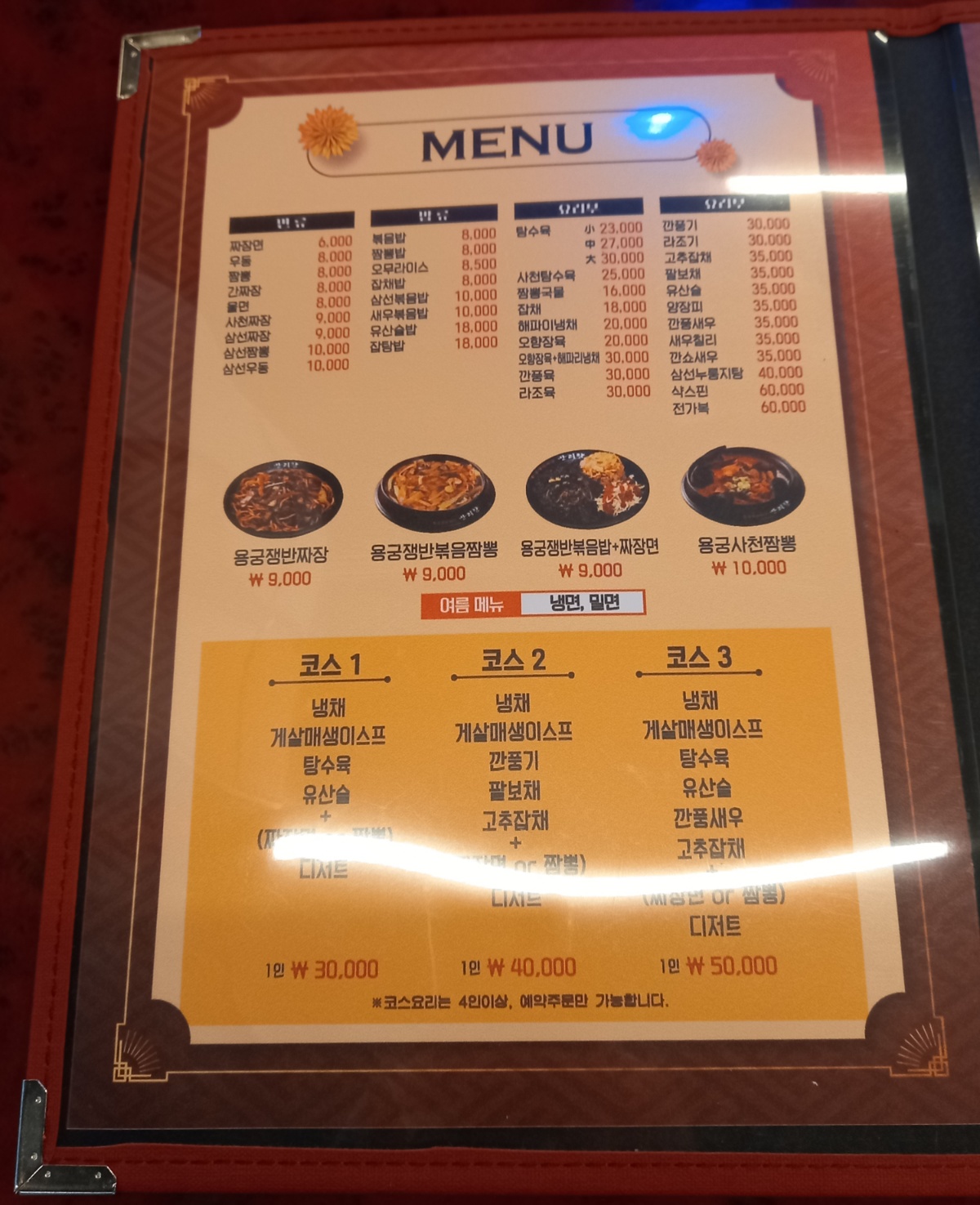 흔한 중국집 메뉴도 많고 술 한잔하기 좋은 요리 메뉴도 판매합니다.