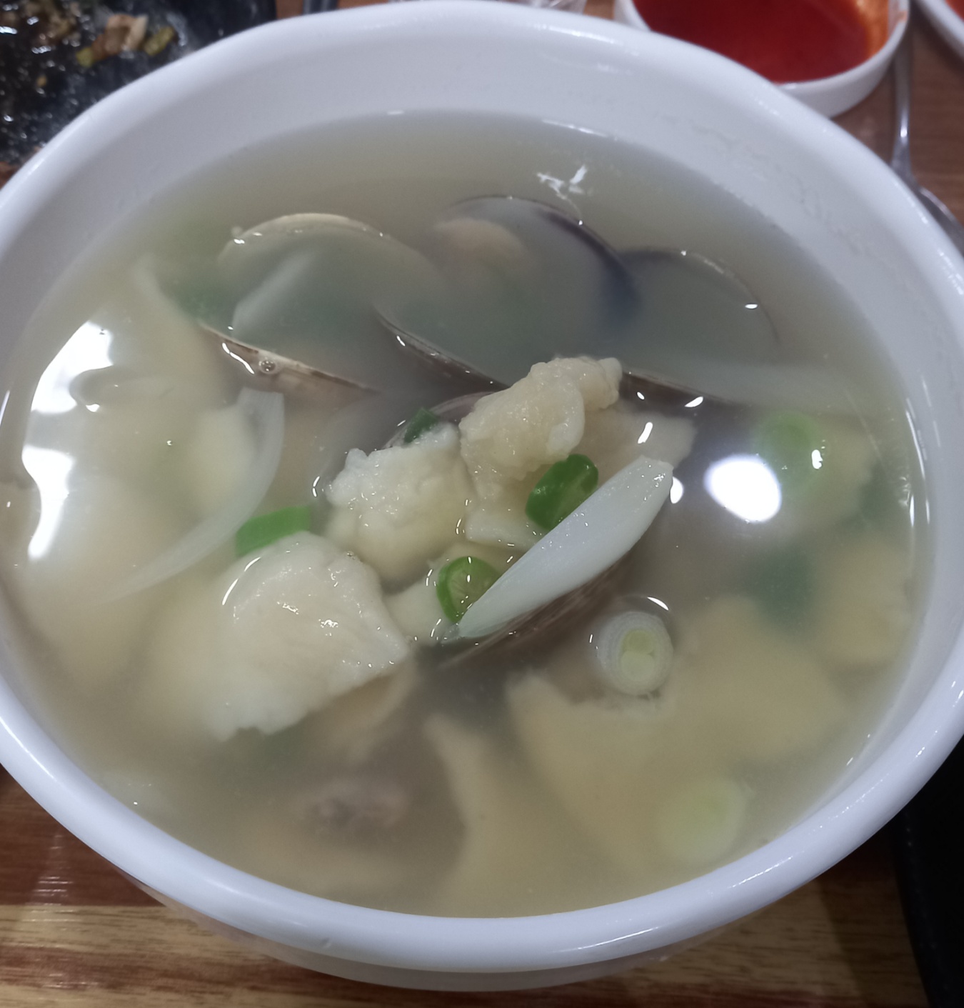 바지락이 들어가서 국물이 시원하고 칼칼하면서 개운한 맛입니다.