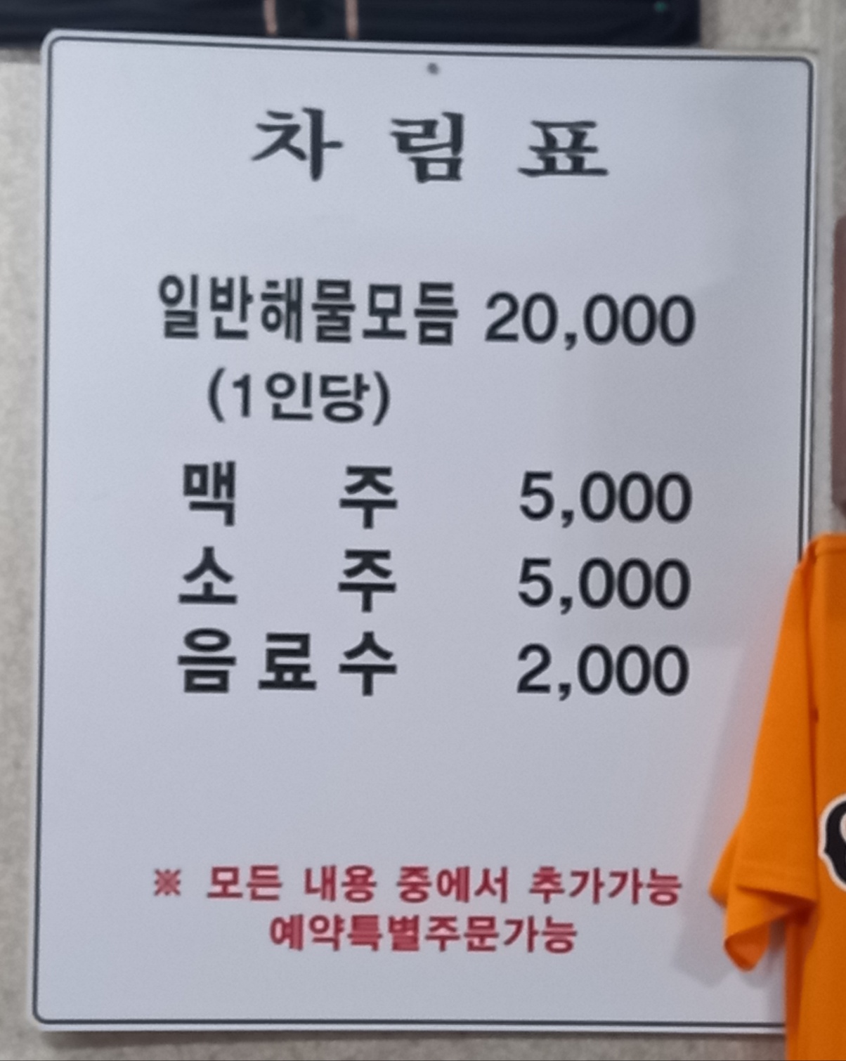 일반해물모듬 1인당 20,000원입니다.